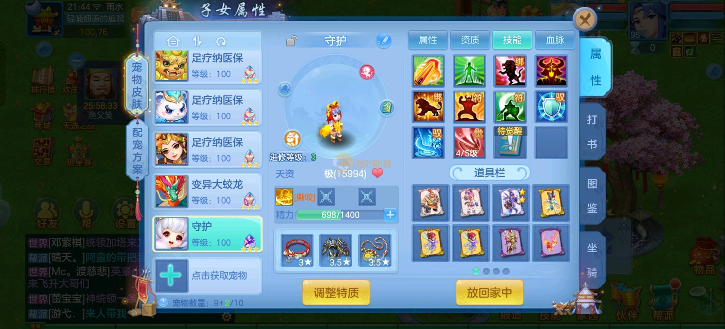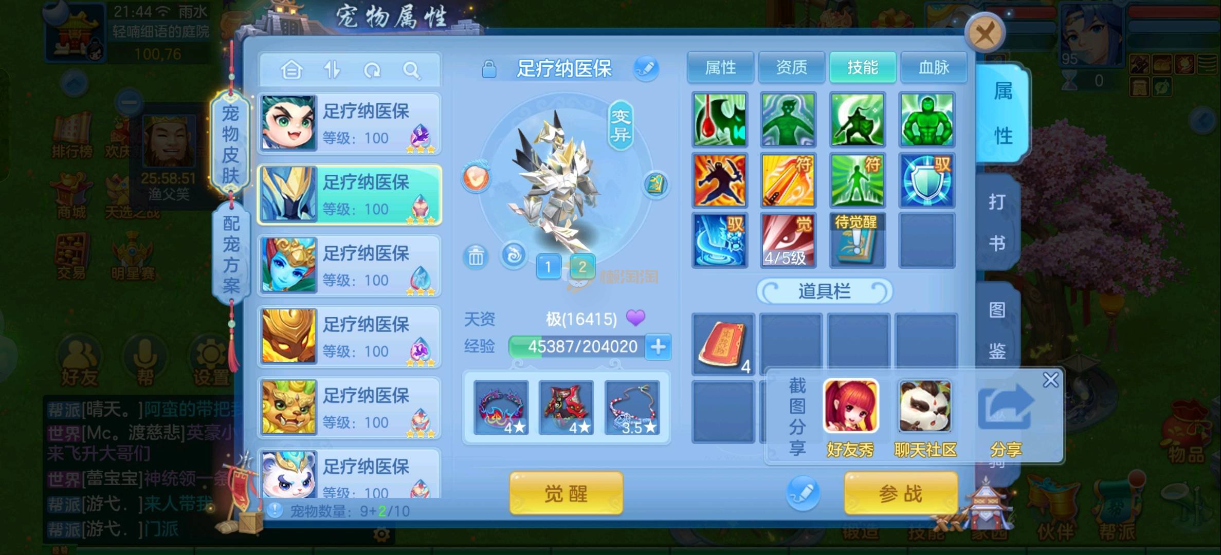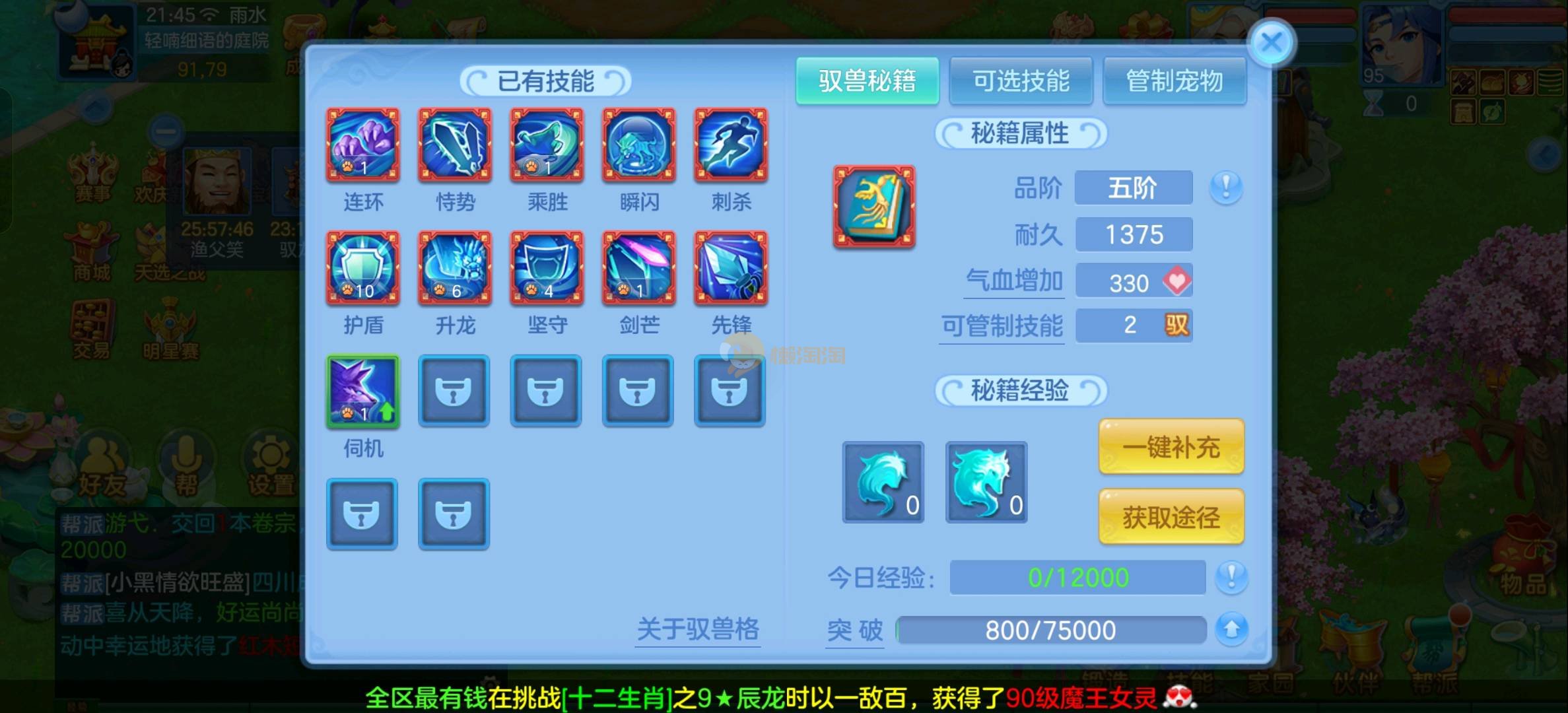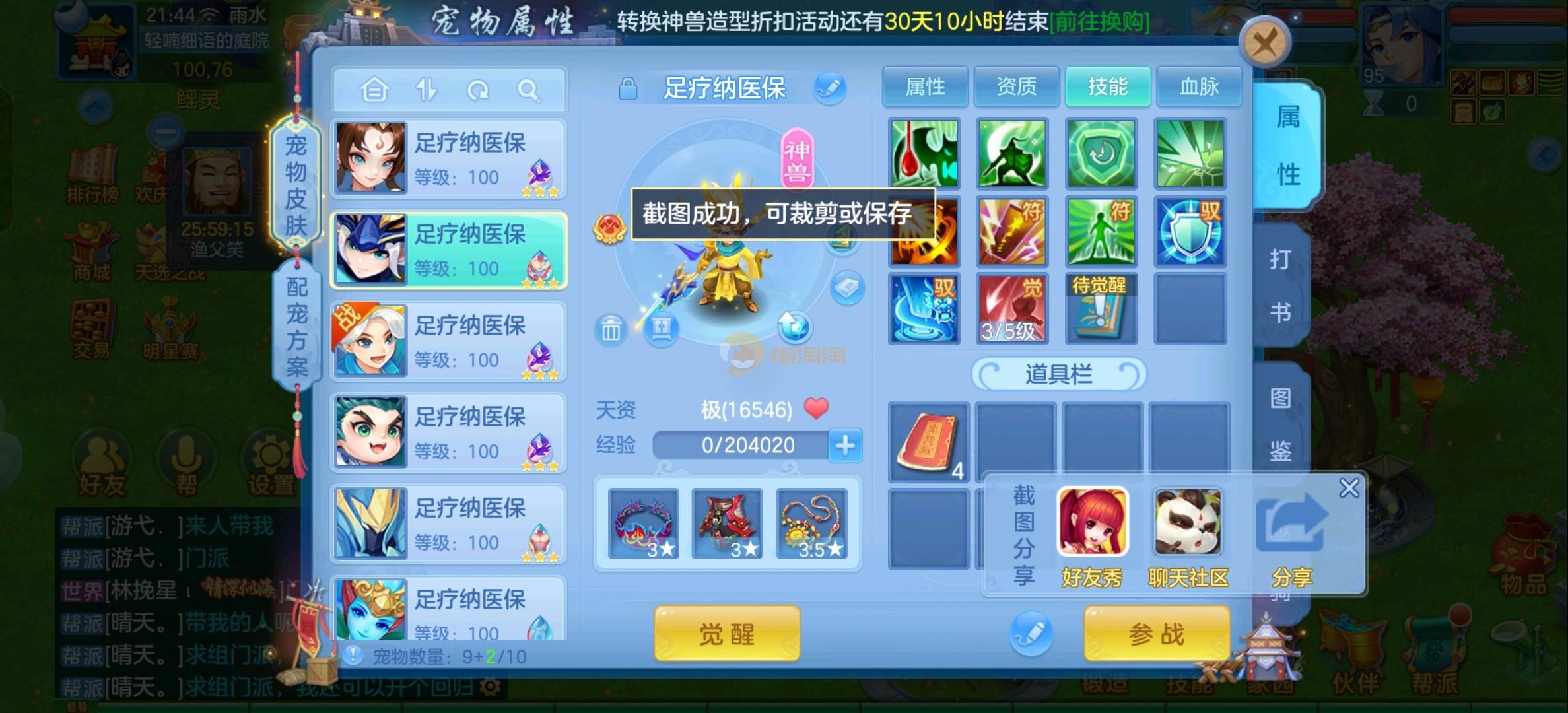 强化仙一龙两蛇一马。特技齐全,宝宝皮肤全,10个满兽魂,辅助特技妙手。13段混12,还有145万银,1884金,坐骑衣橱全,单身海景房,资源满满