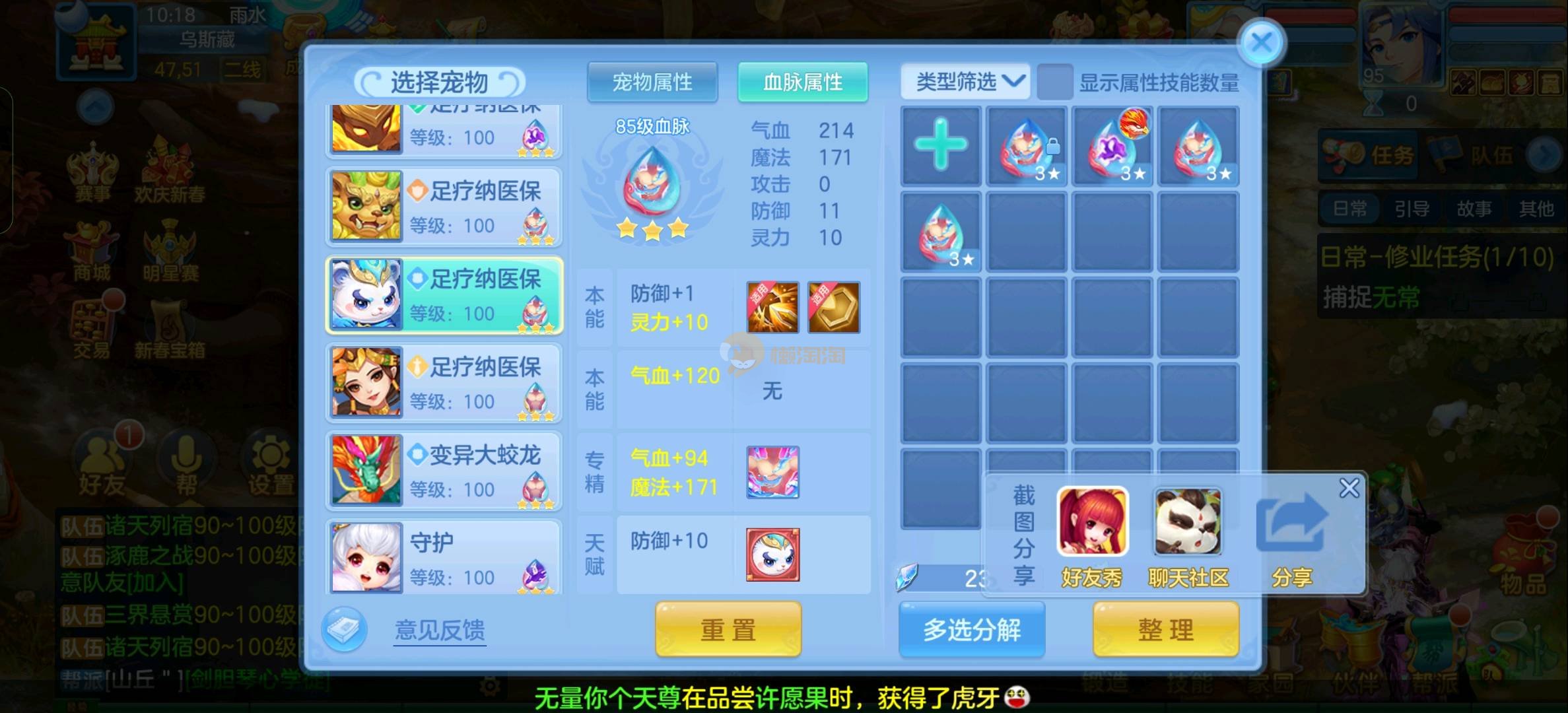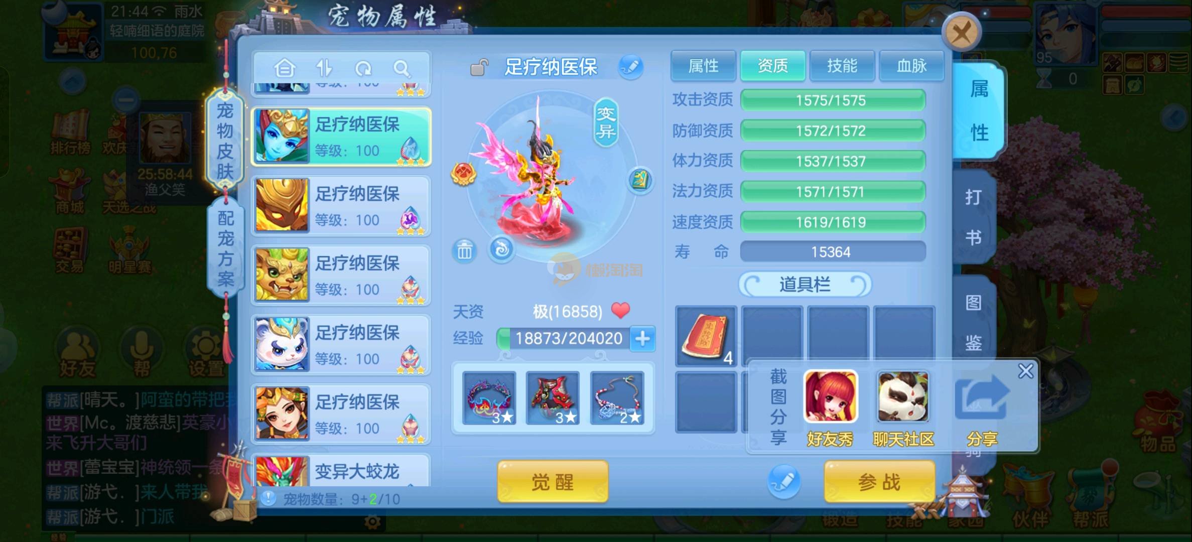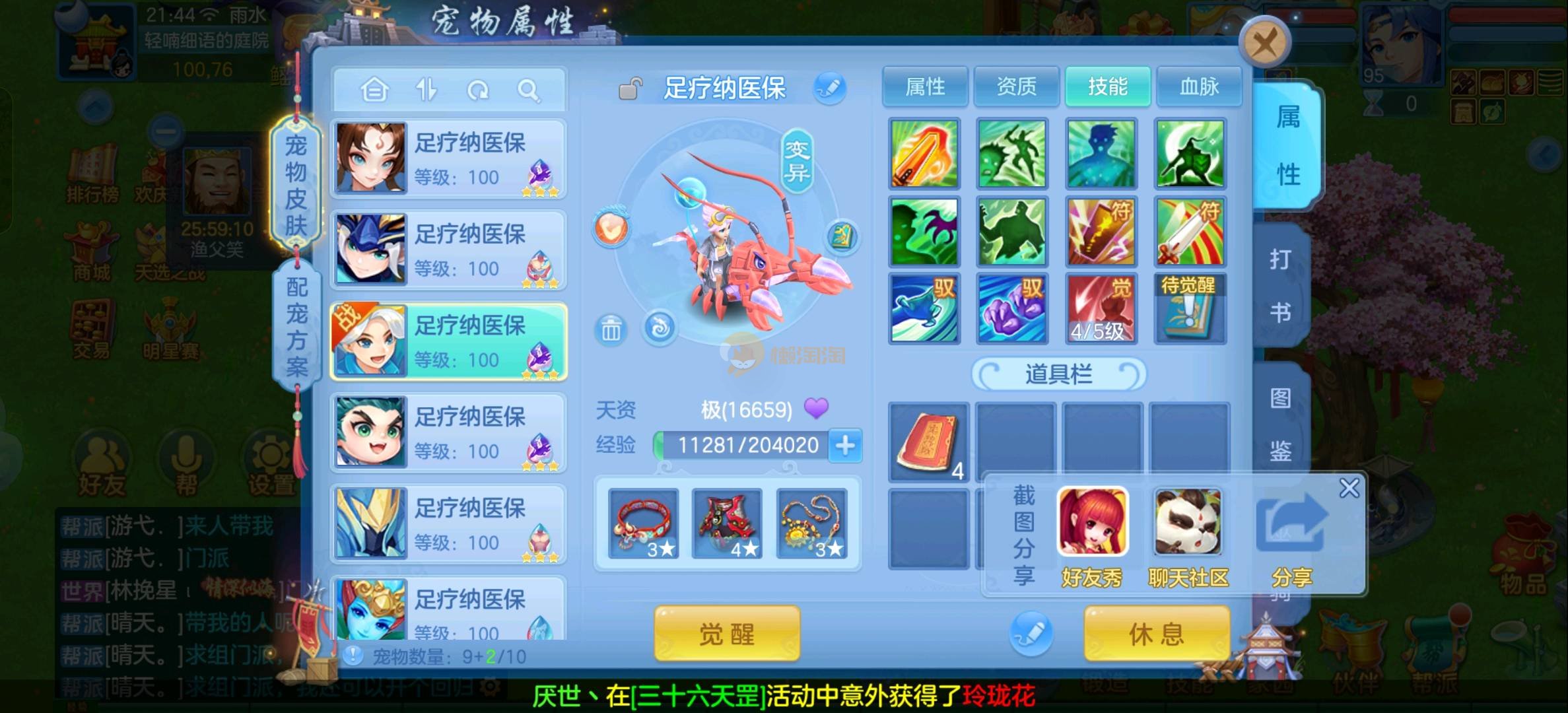 109狮子12混11一内丹蛇双坐骑有泼天日常无压力可打架仓库44个内丹碎片20几个神兽灵可小刀合适秒交易