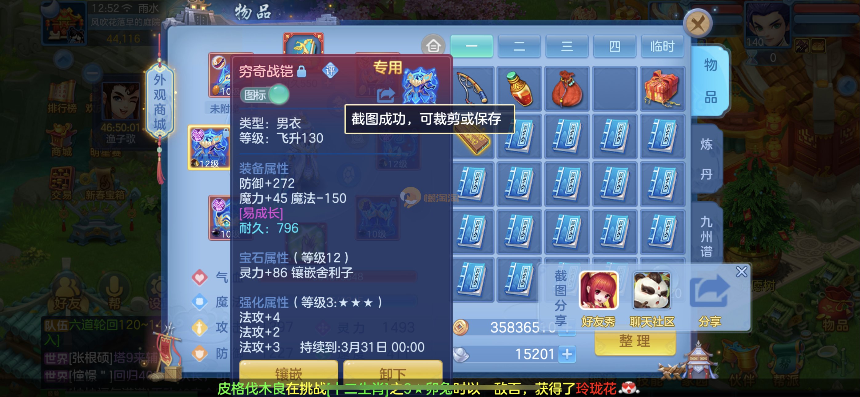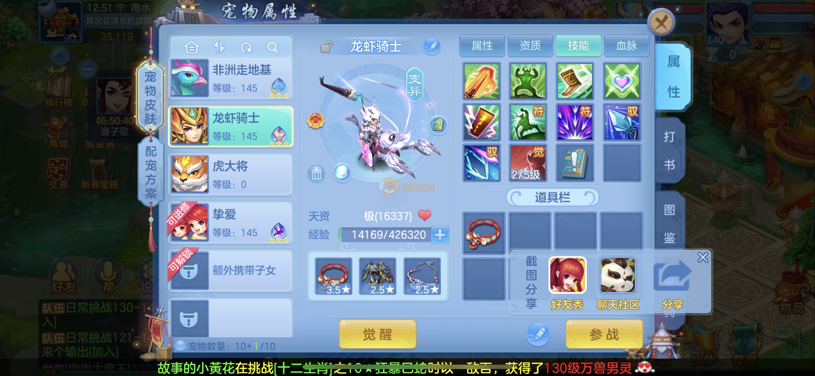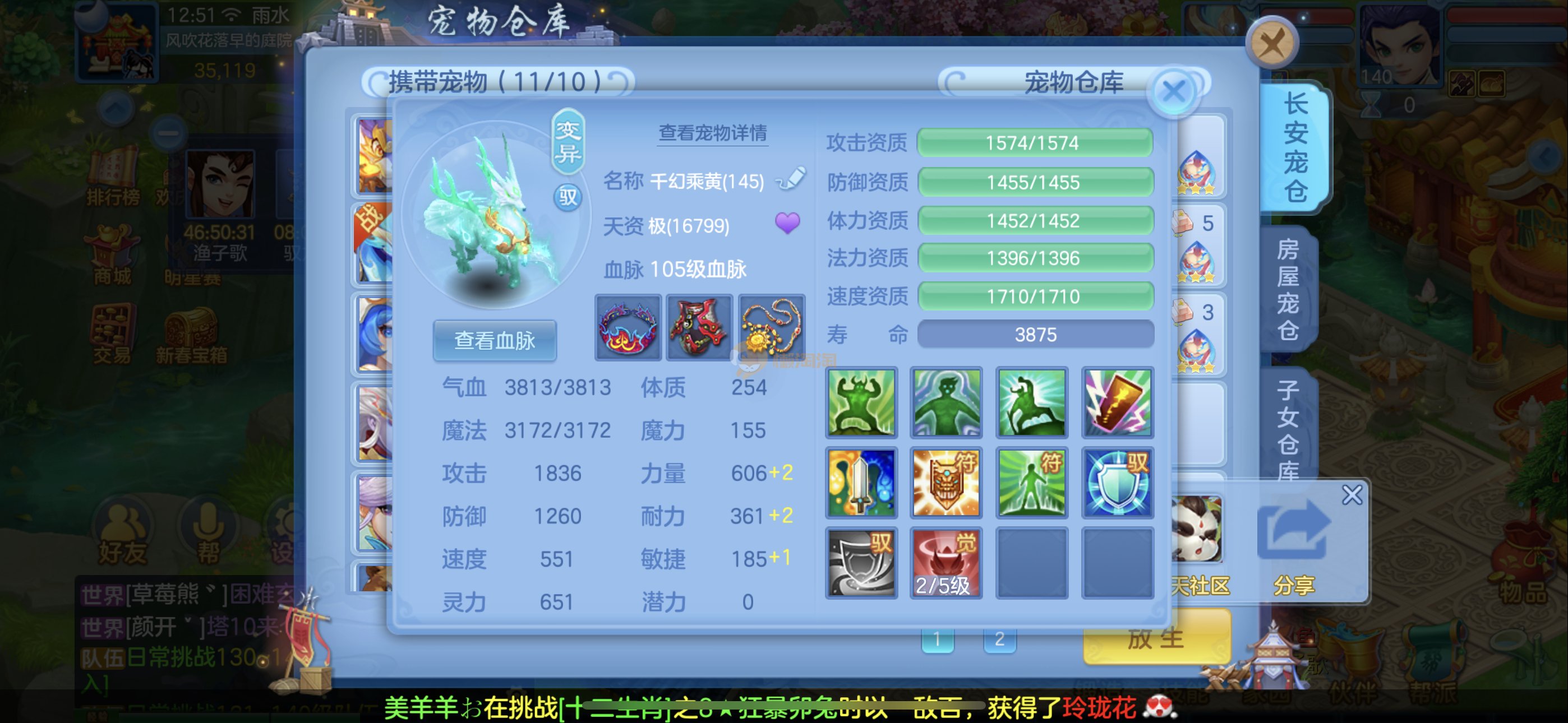 109狮子12混11一内丹蛇双坐骑有泼天日常无压力可打架仓库44个内丹碎片20几个神兽灵可小刀合适秒交易