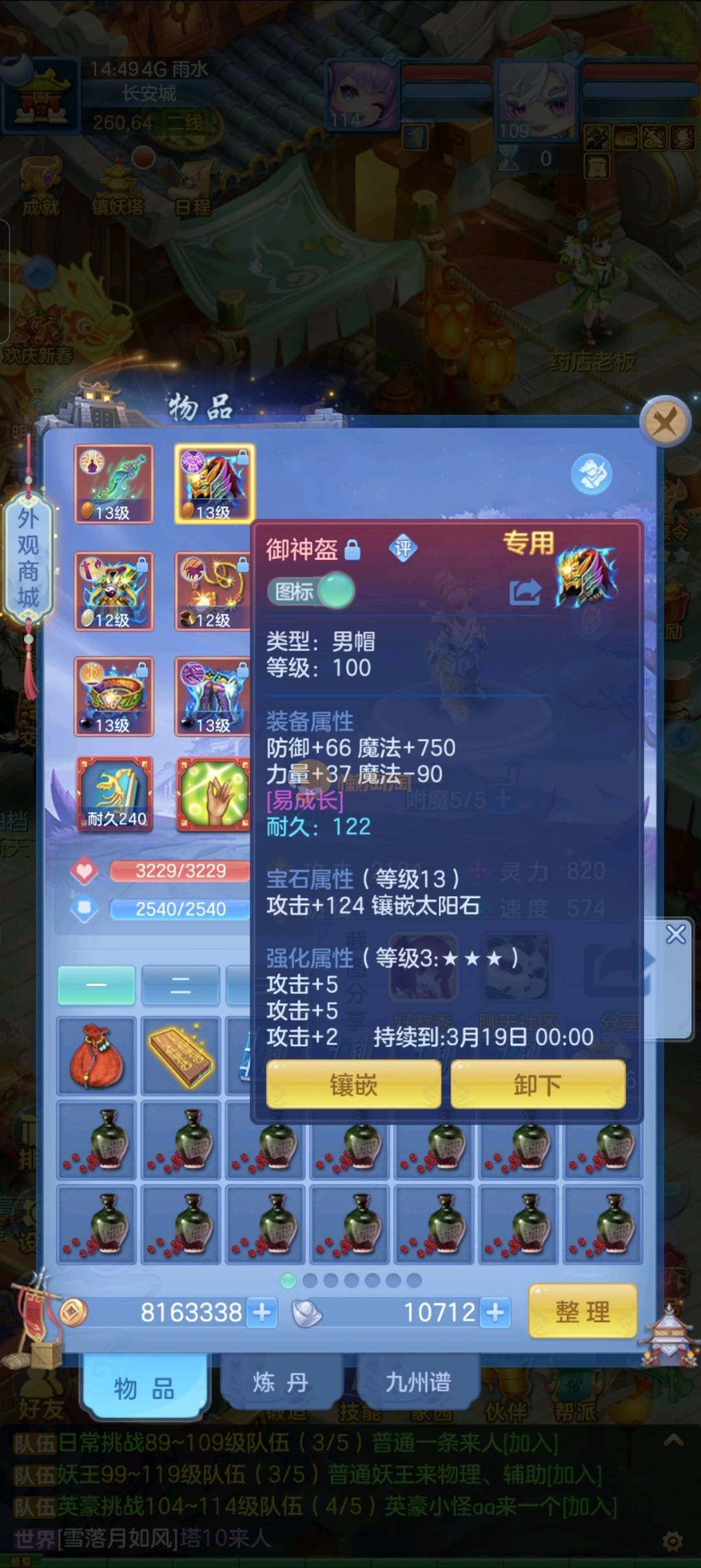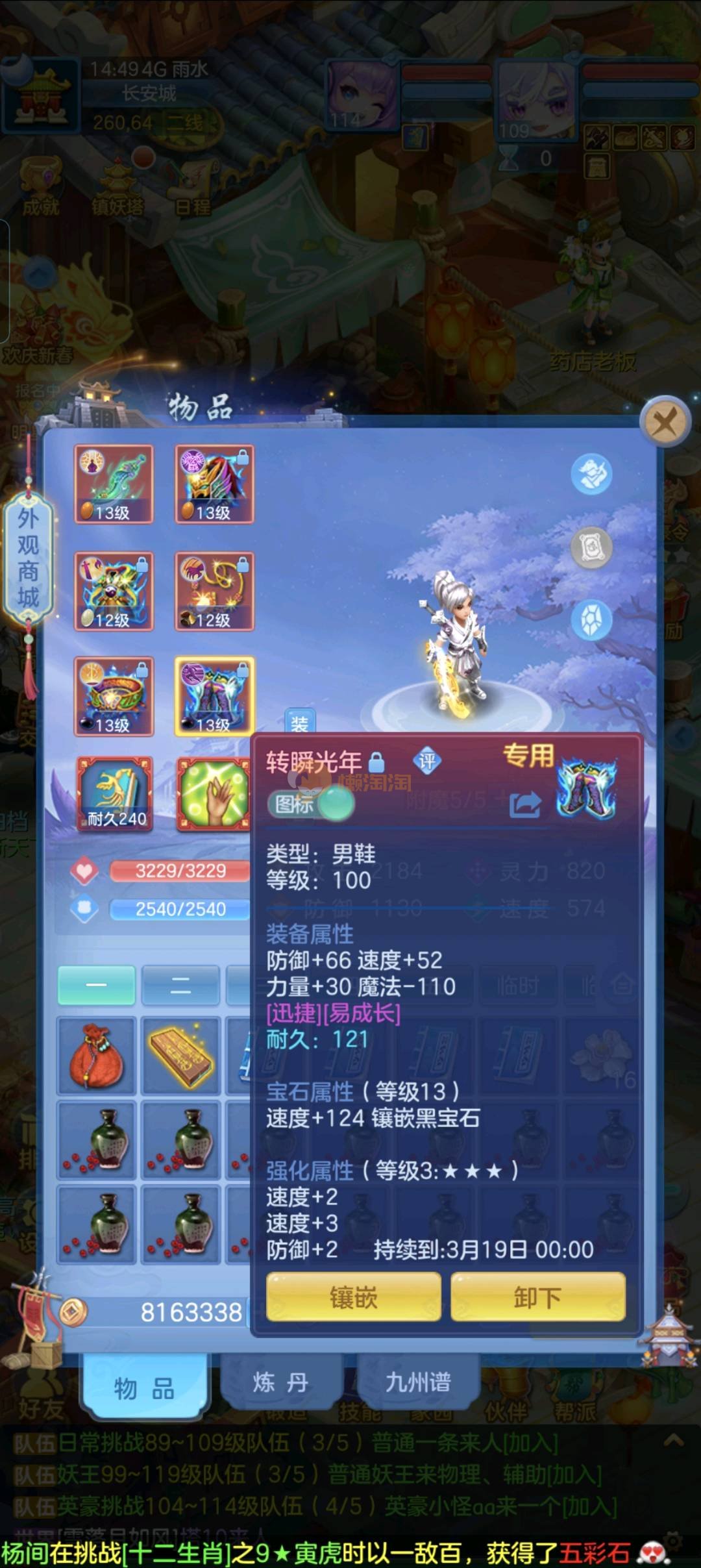 109狮子12混11一内丹蛇双坐骑有泼天日常无压力可打架仓库44个内丹碎片20几个神兽灵可小刀合适秒交易