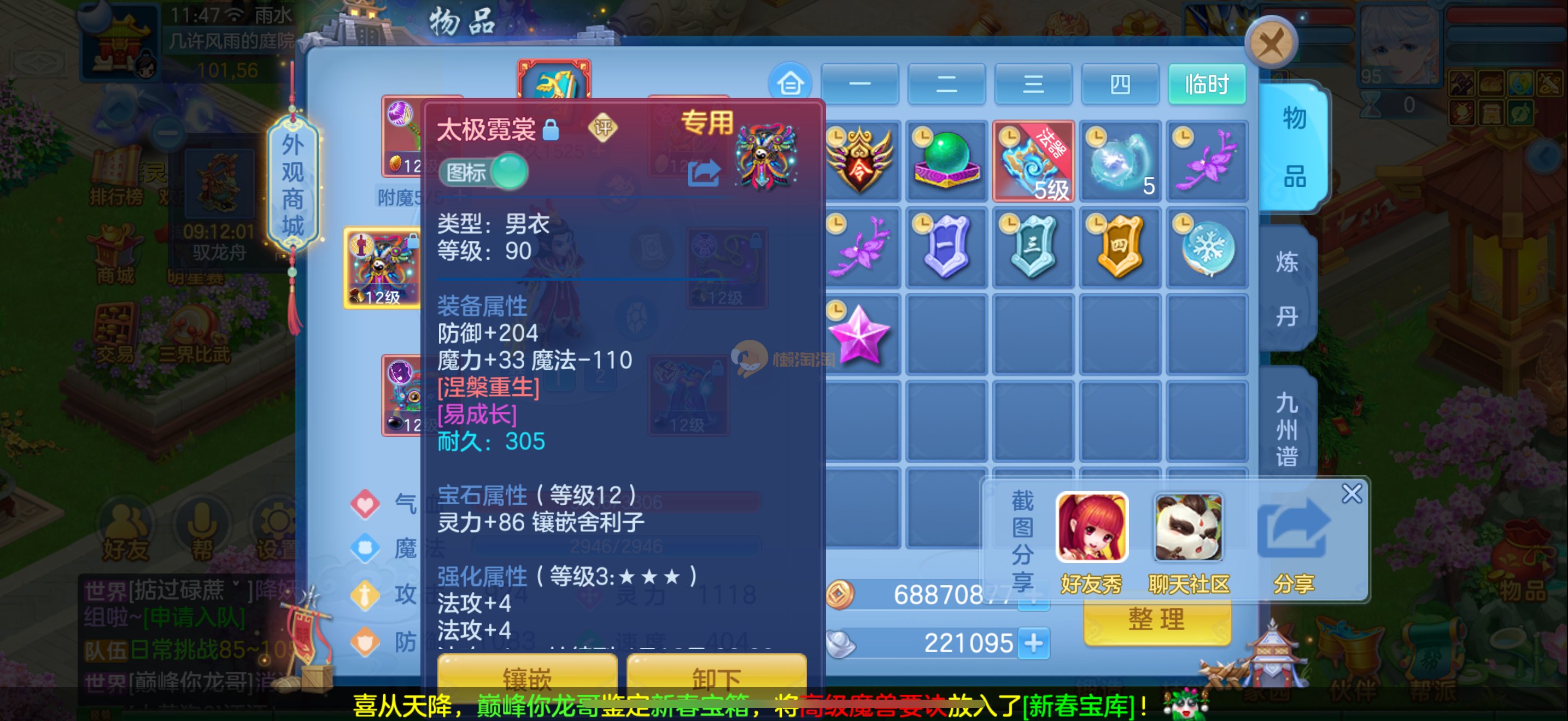 今年勇109龙宫,双内丹神,48神蛋12段易