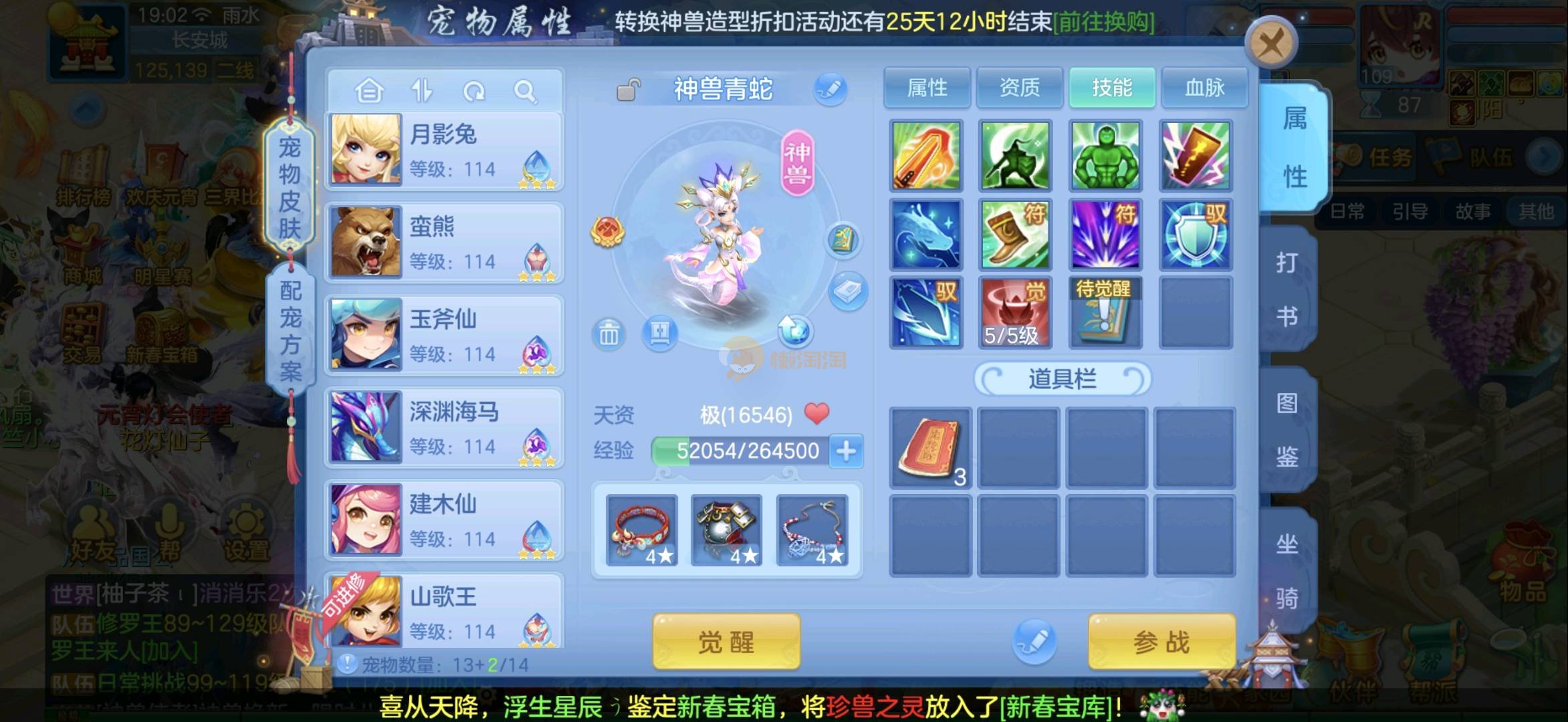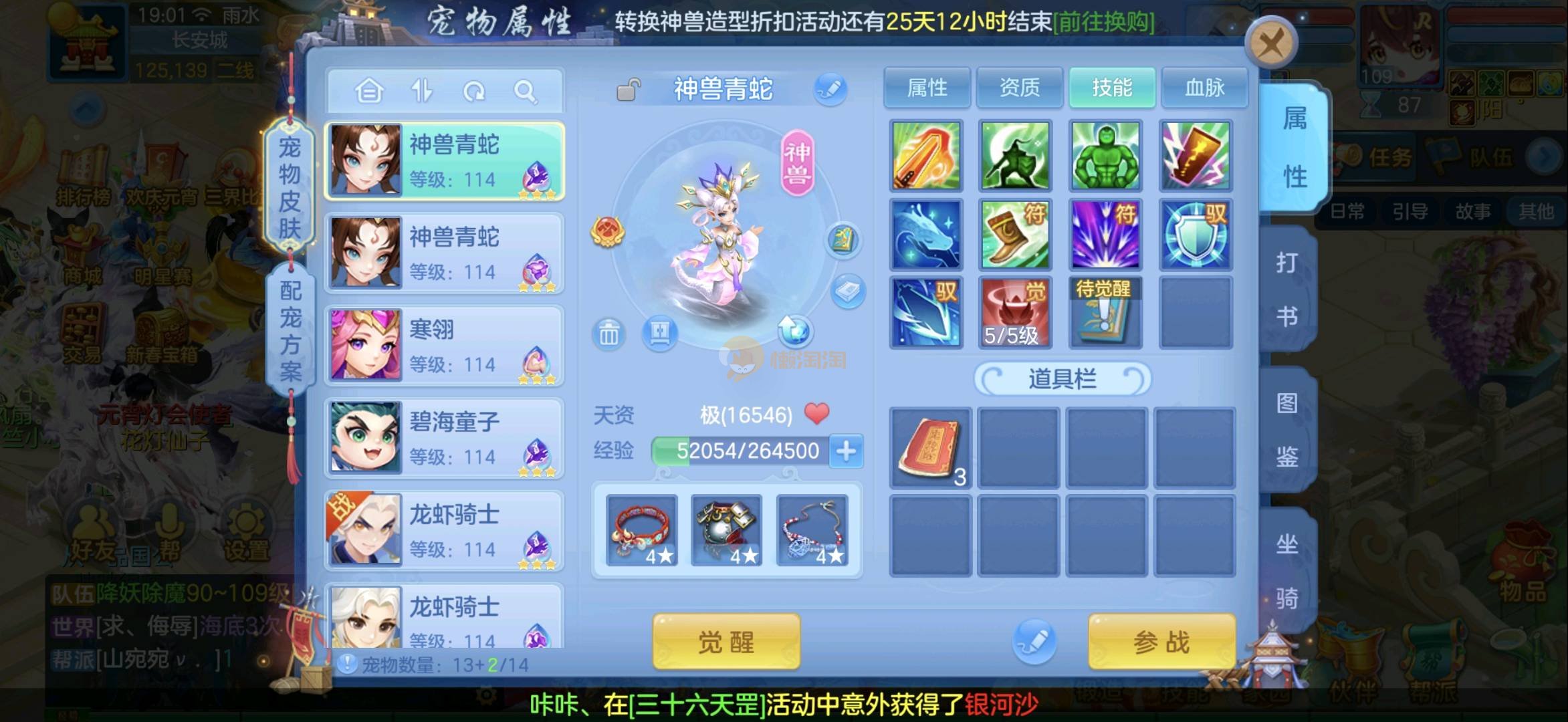 双内丹蛇,第三个在路上。物理辅助装备都有。坐骑随意切换,宠物皮肤9个都是打好书的成品各种满星觉醒。还有两千金。一堆拍卖变身卡和变异变身卡全部进阶满的。几个永久时装装饰和永久发色号多玩不过来了要就直接秒不议价,重点2980邮箱7天换绑。没双重安全