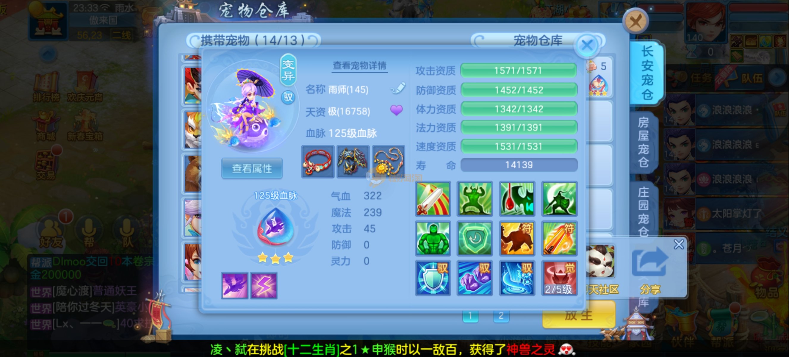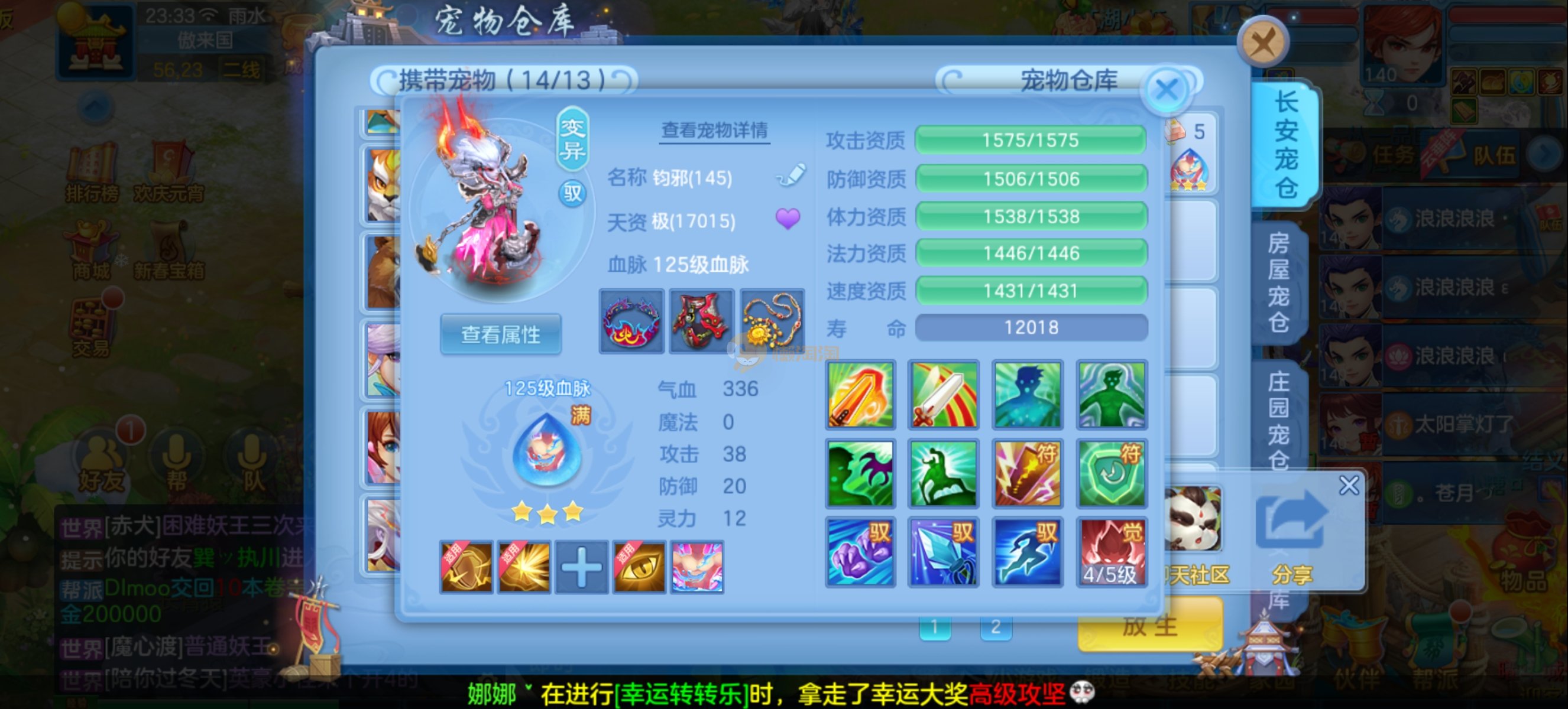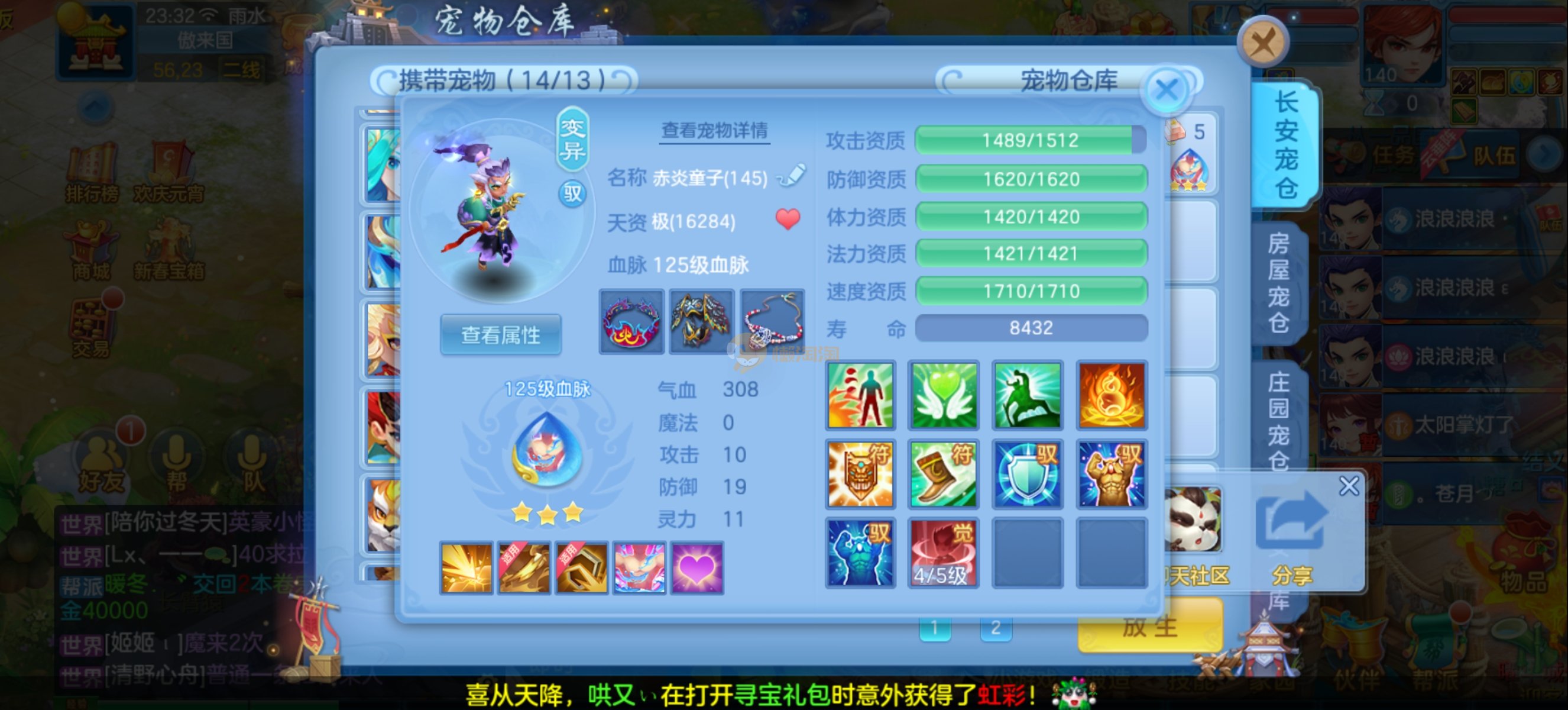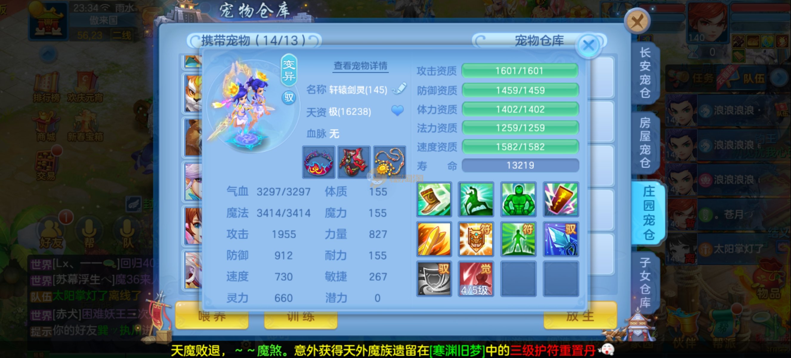少年游140男魔王,14段混,初灵214易成长项链,装备平均单价43左右,1内丹青蛇,7只满兽魂宝宝,11个专属天赋,高级珍稀坐骑,上手就能打架,不同账号小号庄园,2980邮箱,有双重,200多天换绑 绑定自己手机