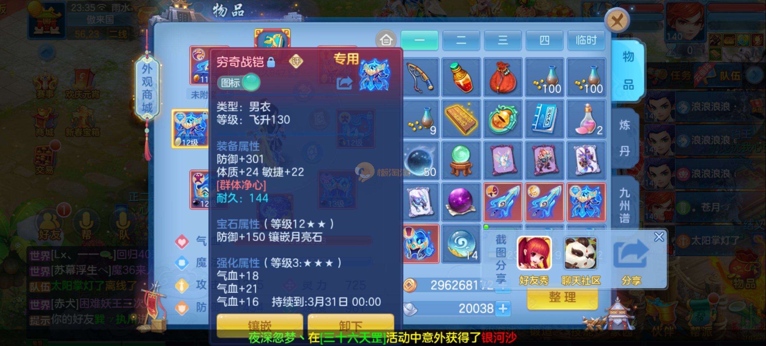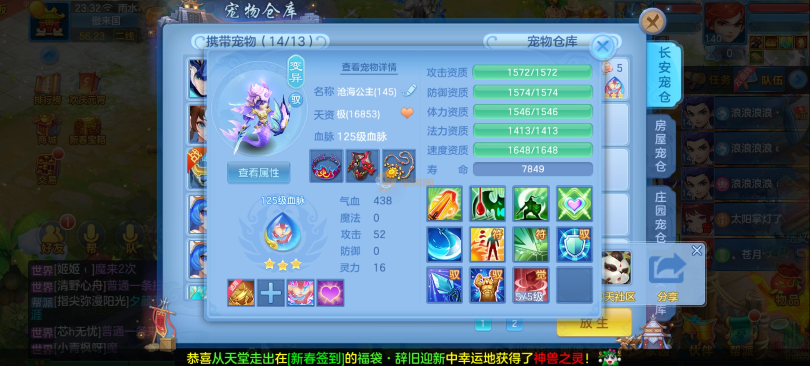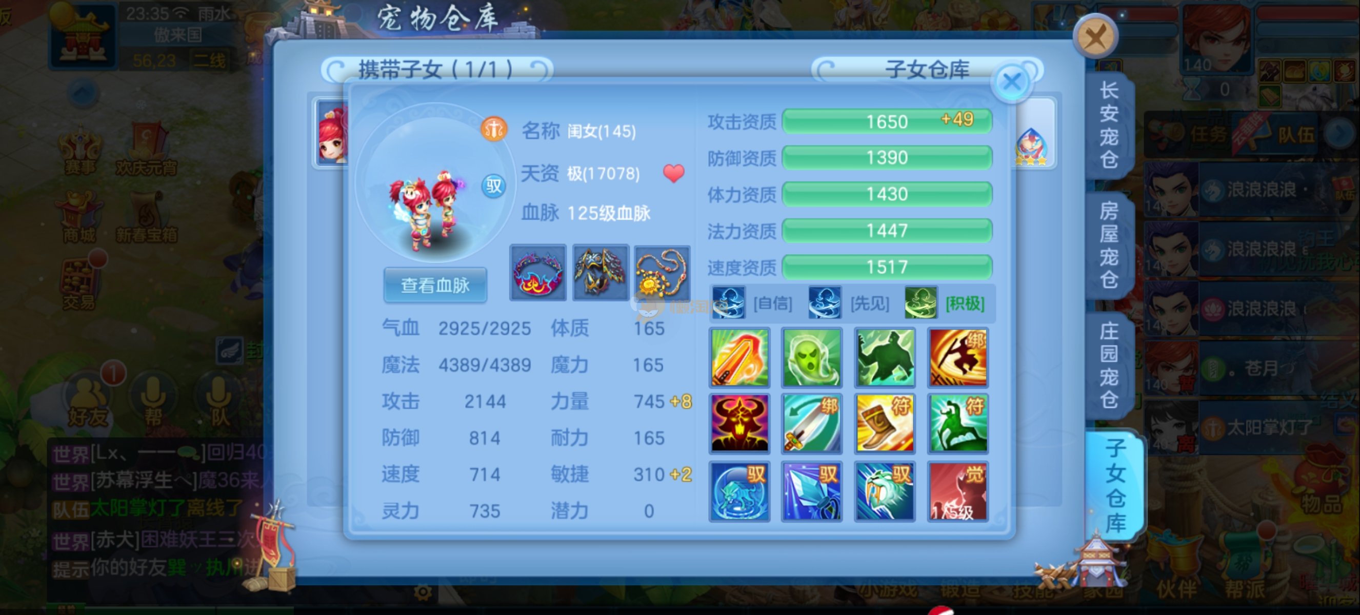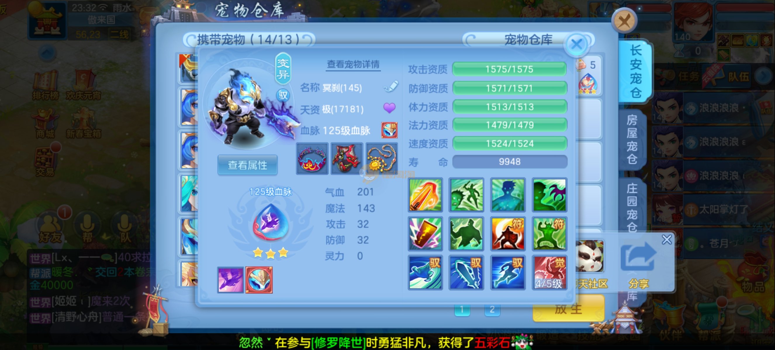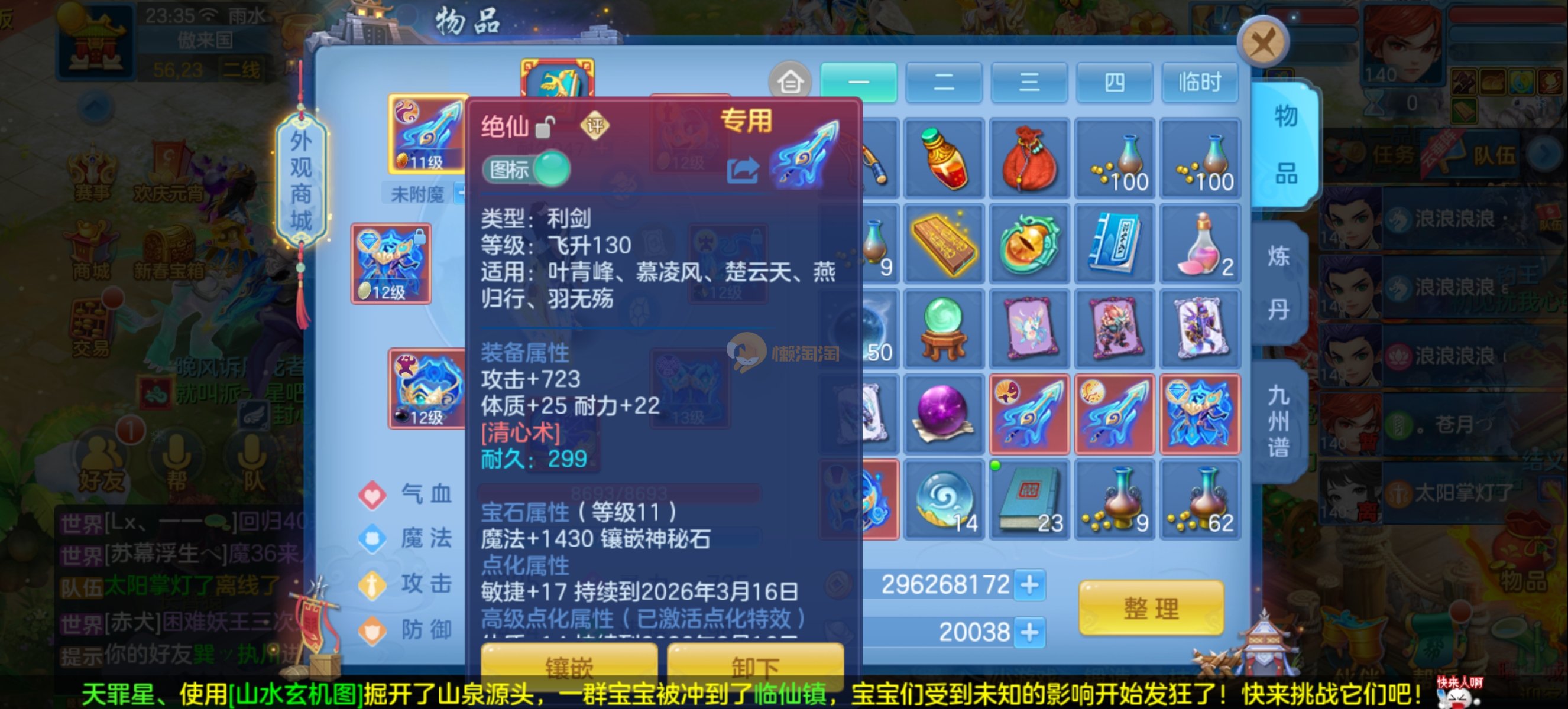 少年游140男魔王,14段混,初灵214易成长项链,装备平均单价43左右,1内丹青蛇,7只满兽魂宝宝,11个专属天赋,高级珍稀坐骑,上手就能打架,不同账号小号庄园,2980邮箱,有双重,200多天换绑 绑定自己手机