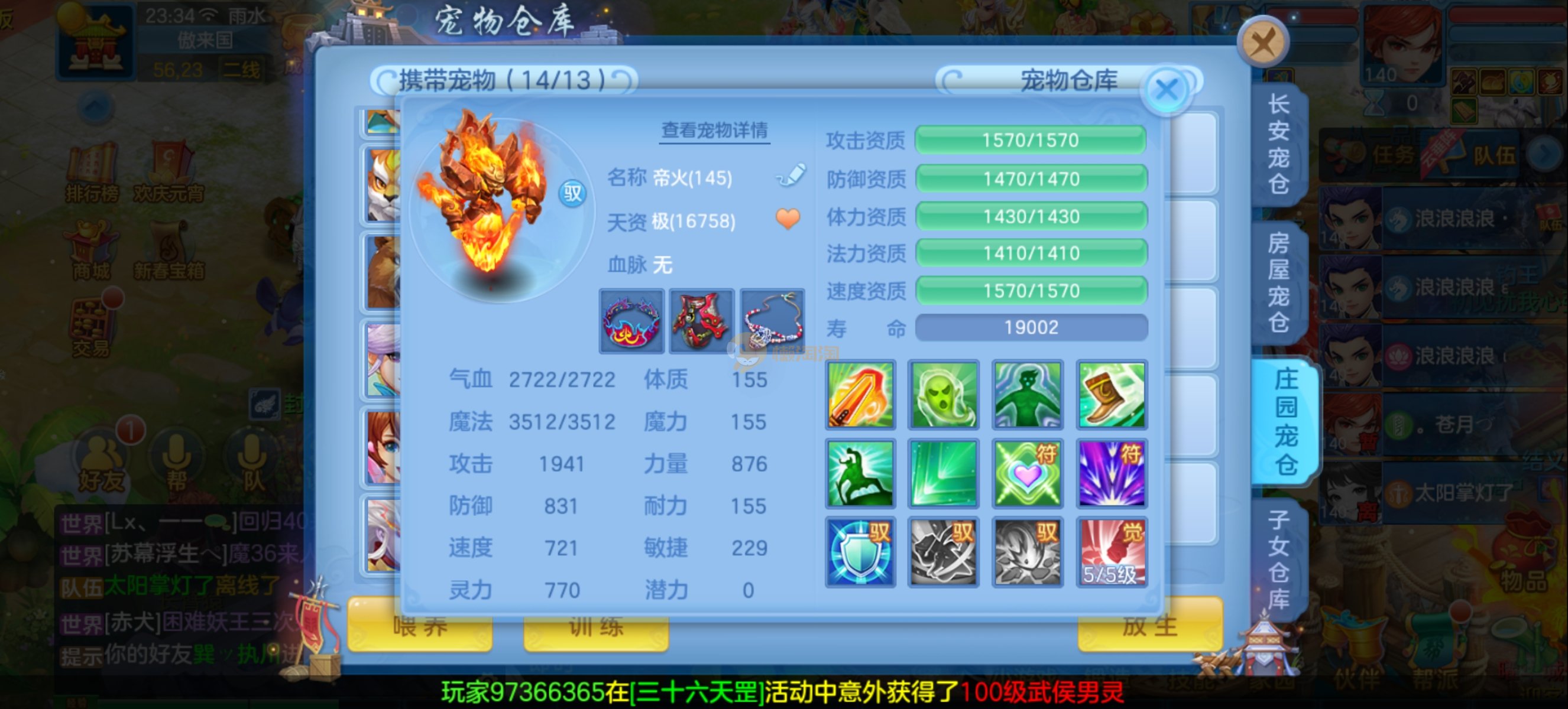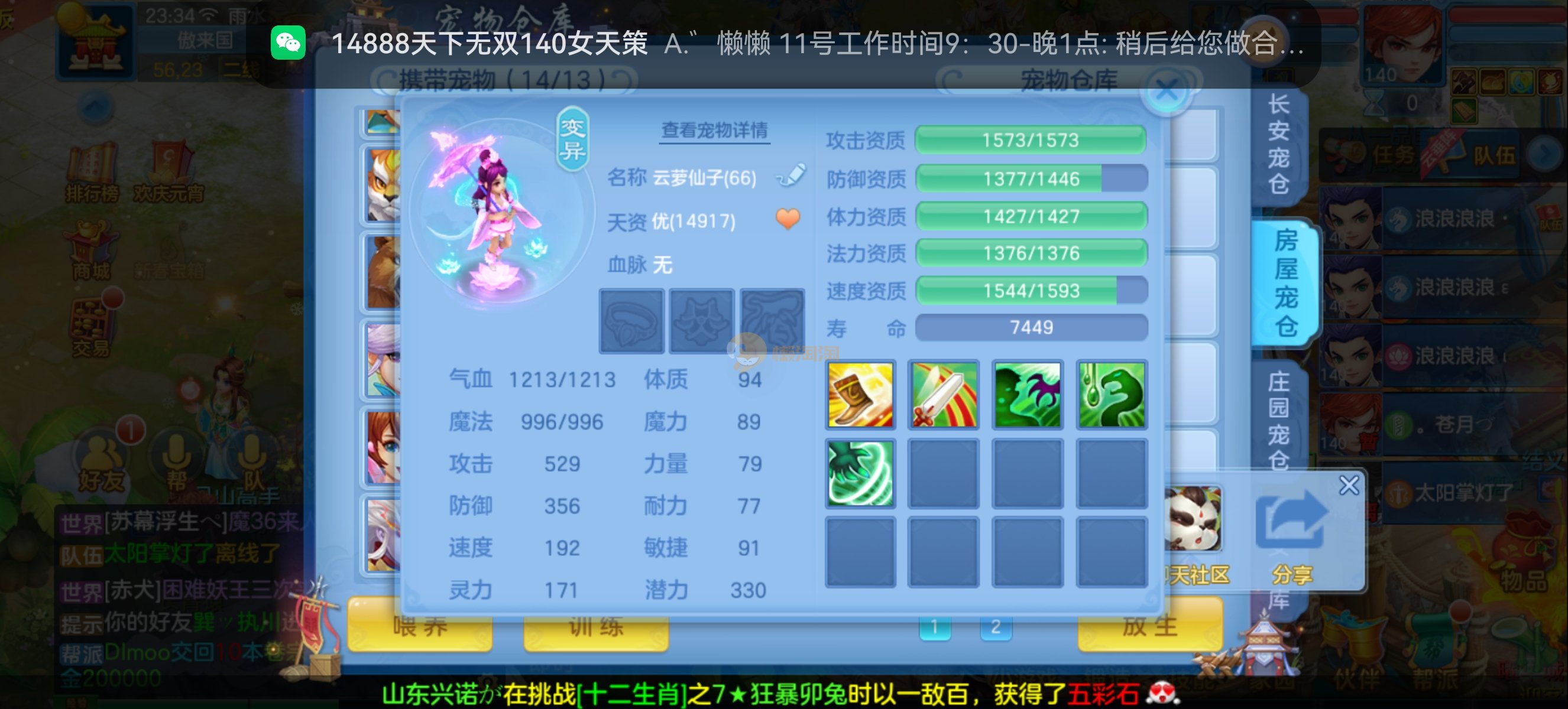 今年勇95打架耀华,1仙5神,5强化,2980无双重。