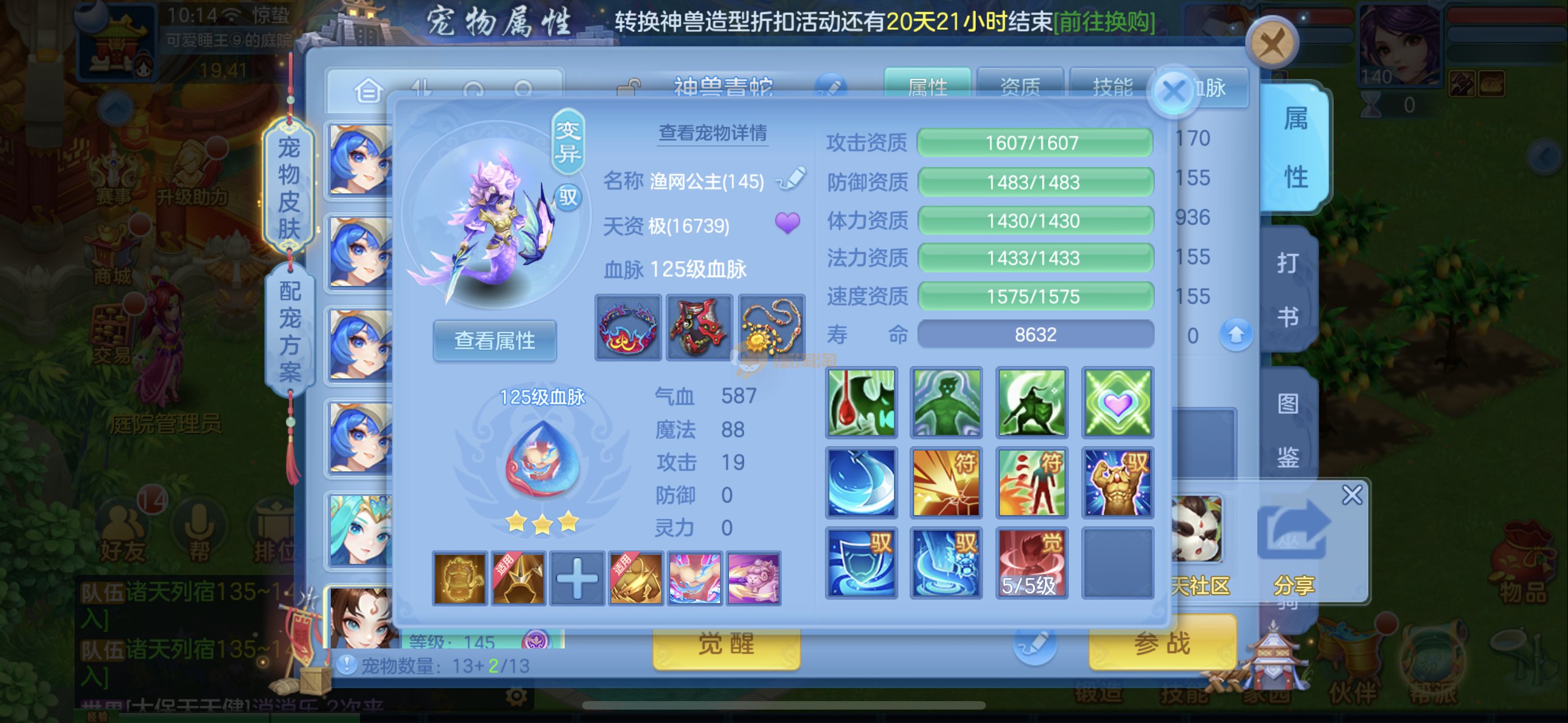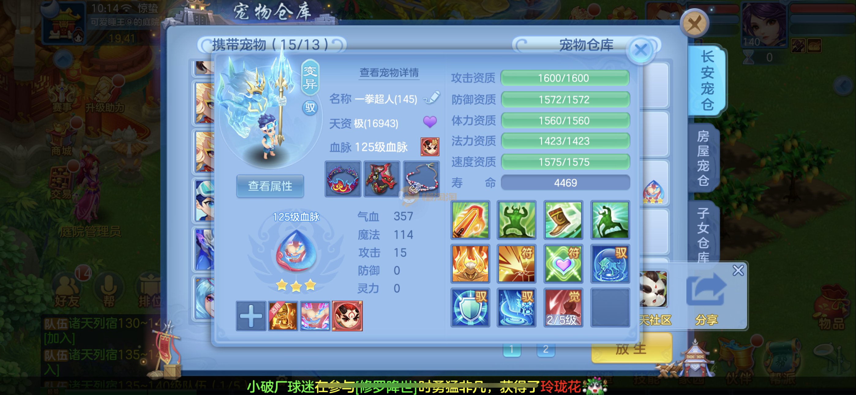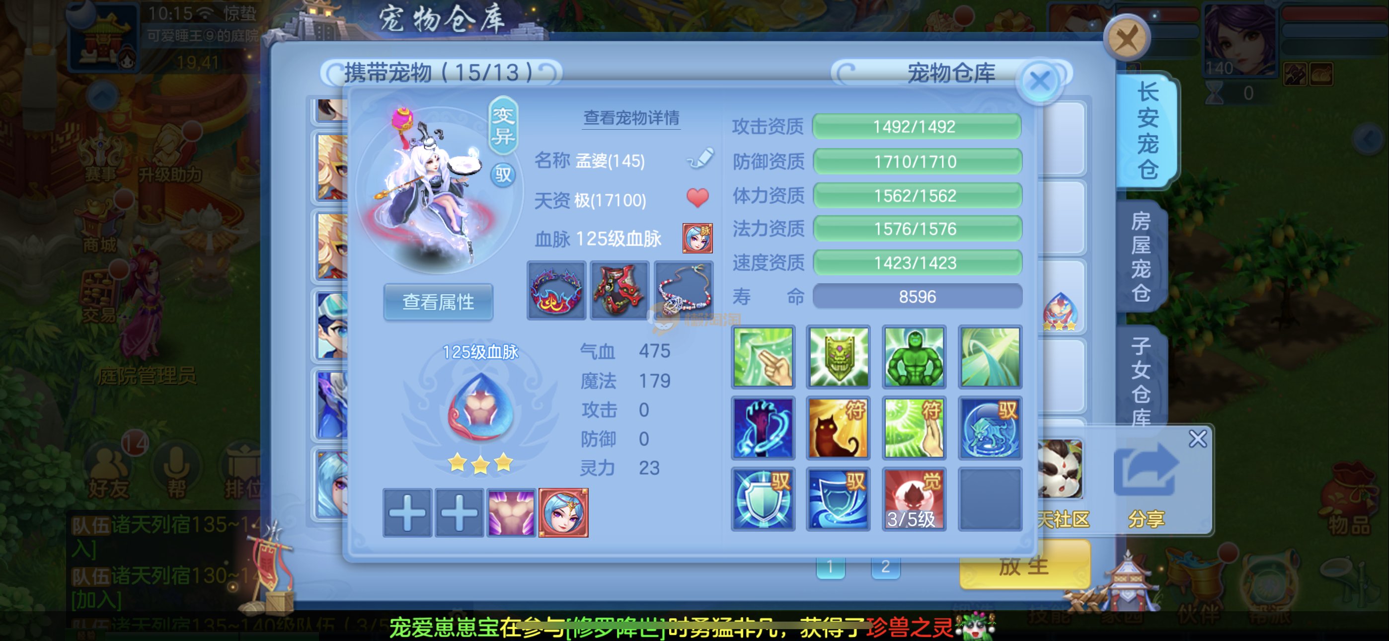 捡漏140冥月,霸王龙,4极品公主(仓库还有只),兔子,蚩尤,石头人,葫芦,云萝,祸斗,炎弓,虎大将,建木,玉斧,剑灵,噬魂兽,孟婆,基本全是红紫心爆资质,很多带专属天赋。15宝宝格子还可以开头像,3套人物加点2套装备切换,霸王龙坐骑,12专属,3皮肤。13段混毕业装上段就行。