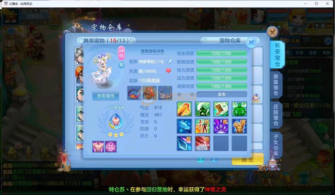 叱咤109级女龙宫 13血脉 带庄园,双子女,全身高属性易装备,双神兽青蛇,2000金币 着急出,2980邮箱一年换绑验证码找懒懒