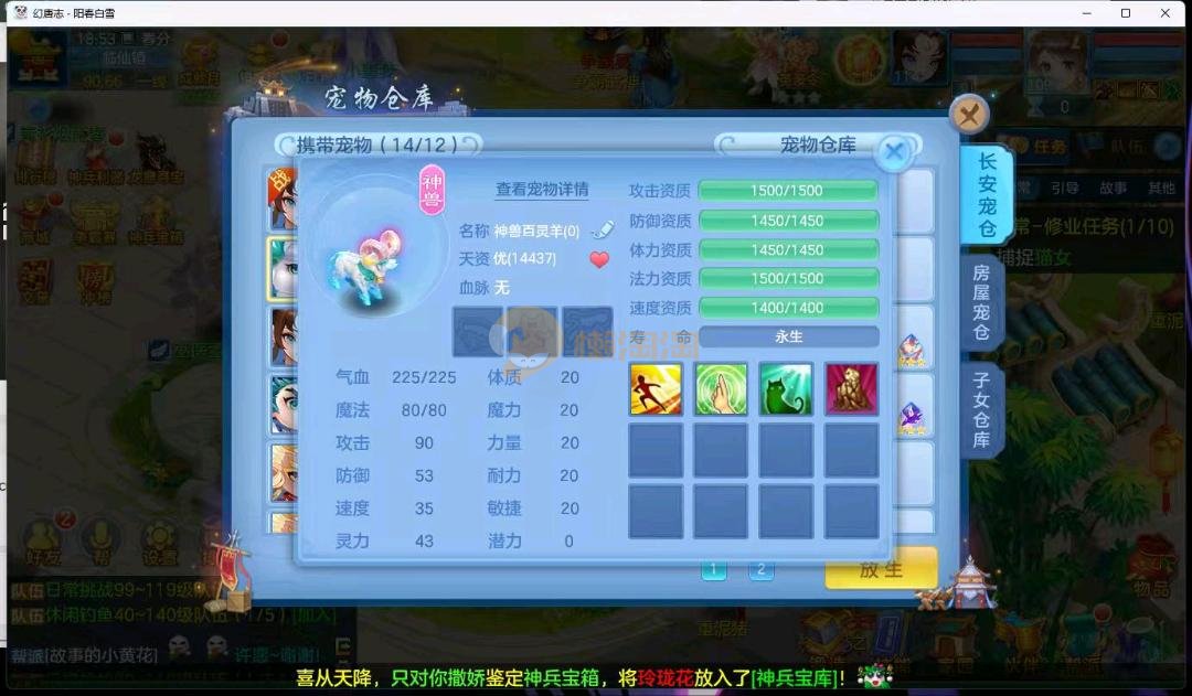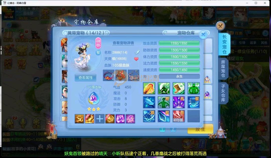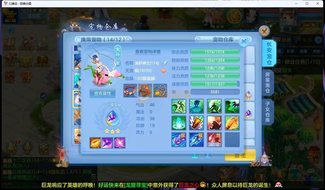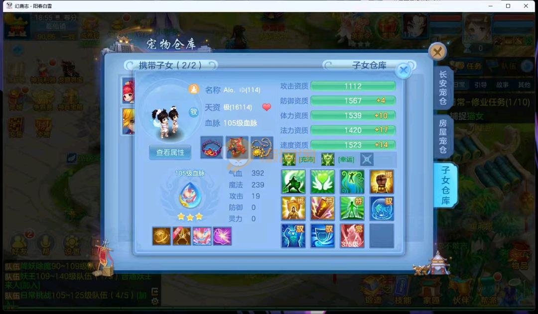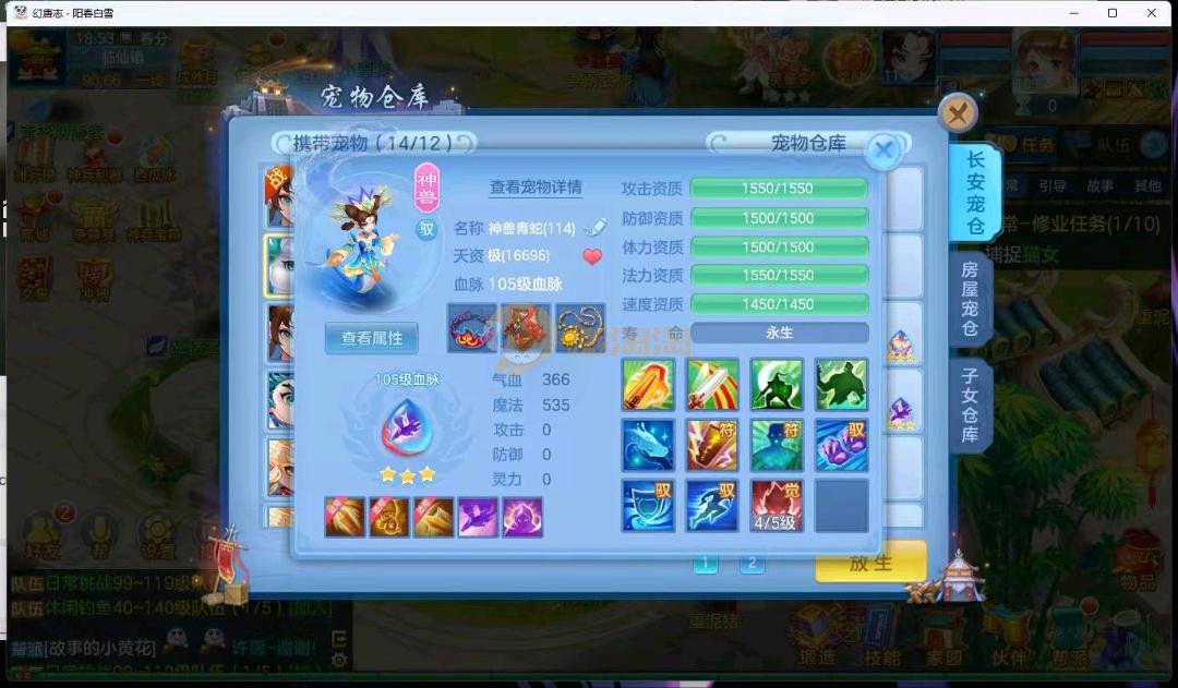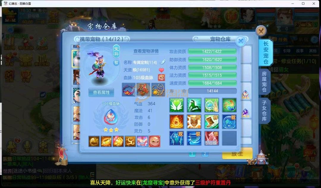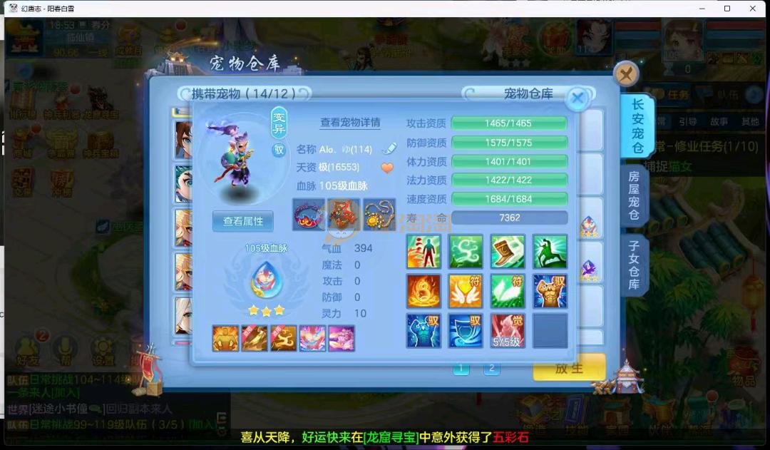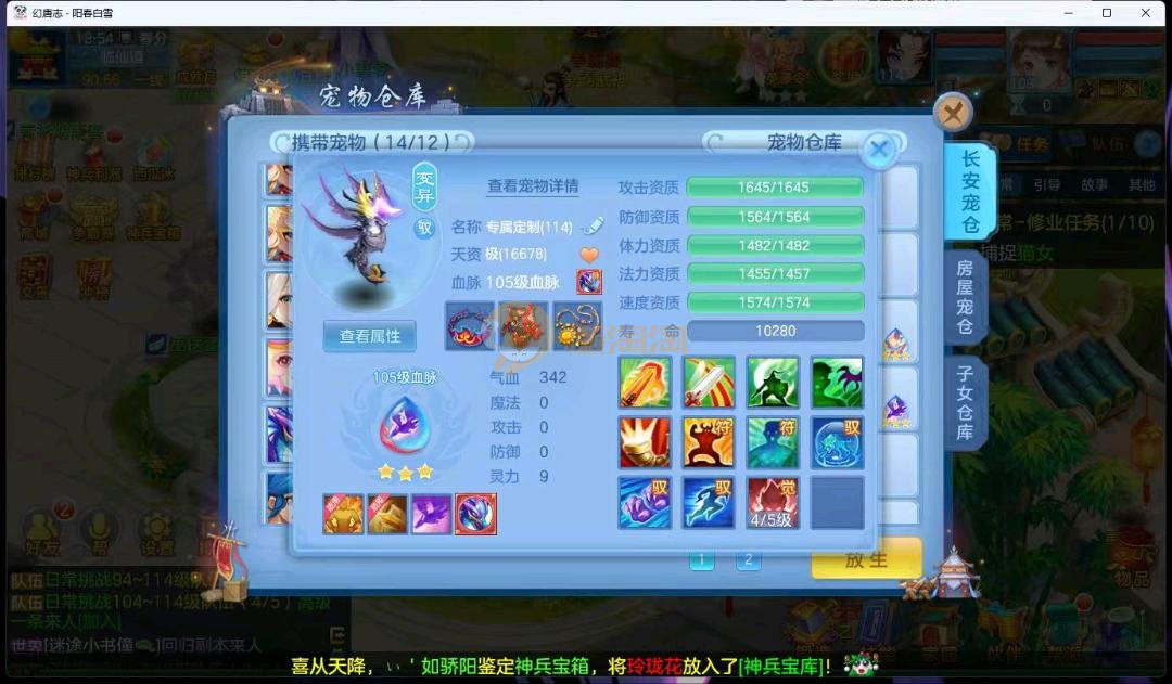 阳春白雪109级女万兽,天花板神器武器易狂暴591+37易狂暴,超级无敌武器养老无敌,细节看图3神兽,装备宝宝很齐全 细节看图