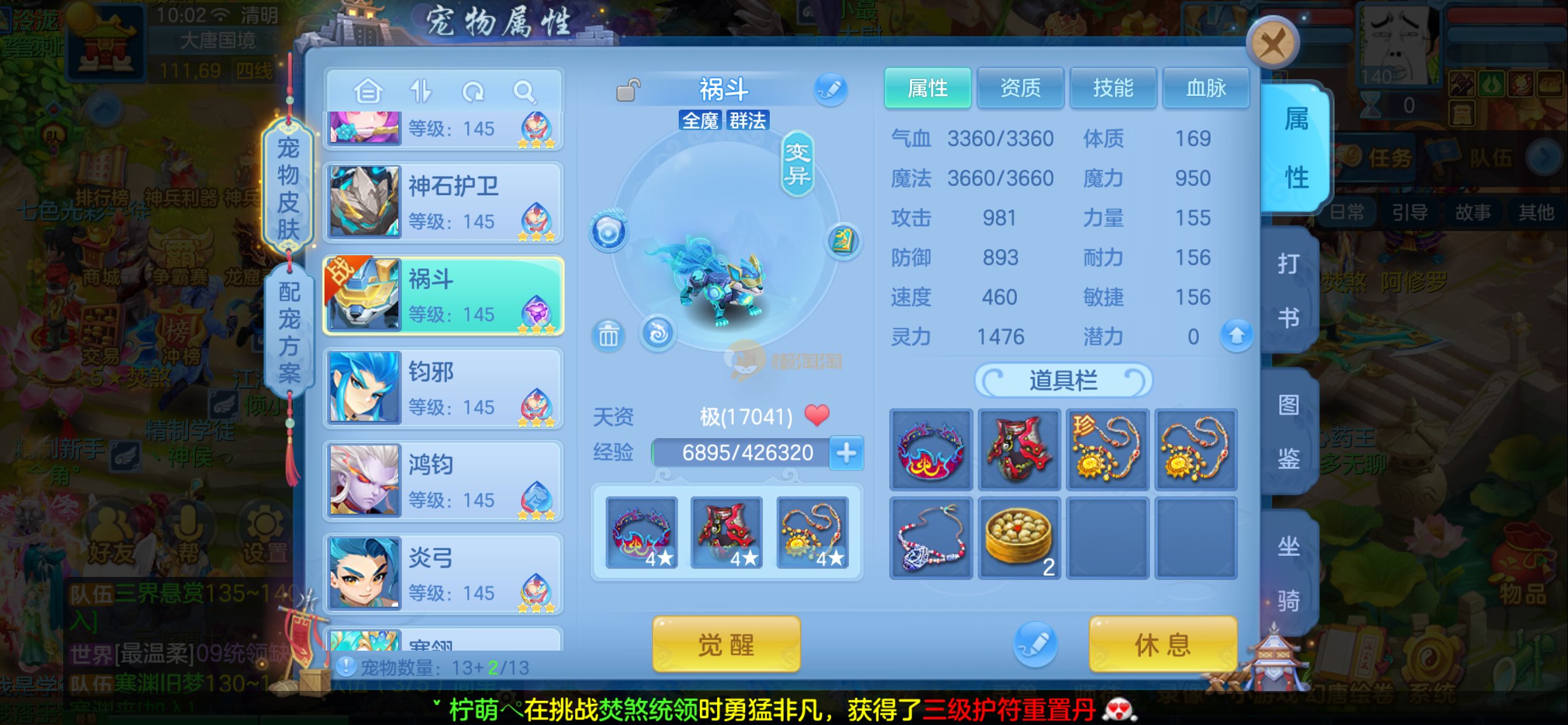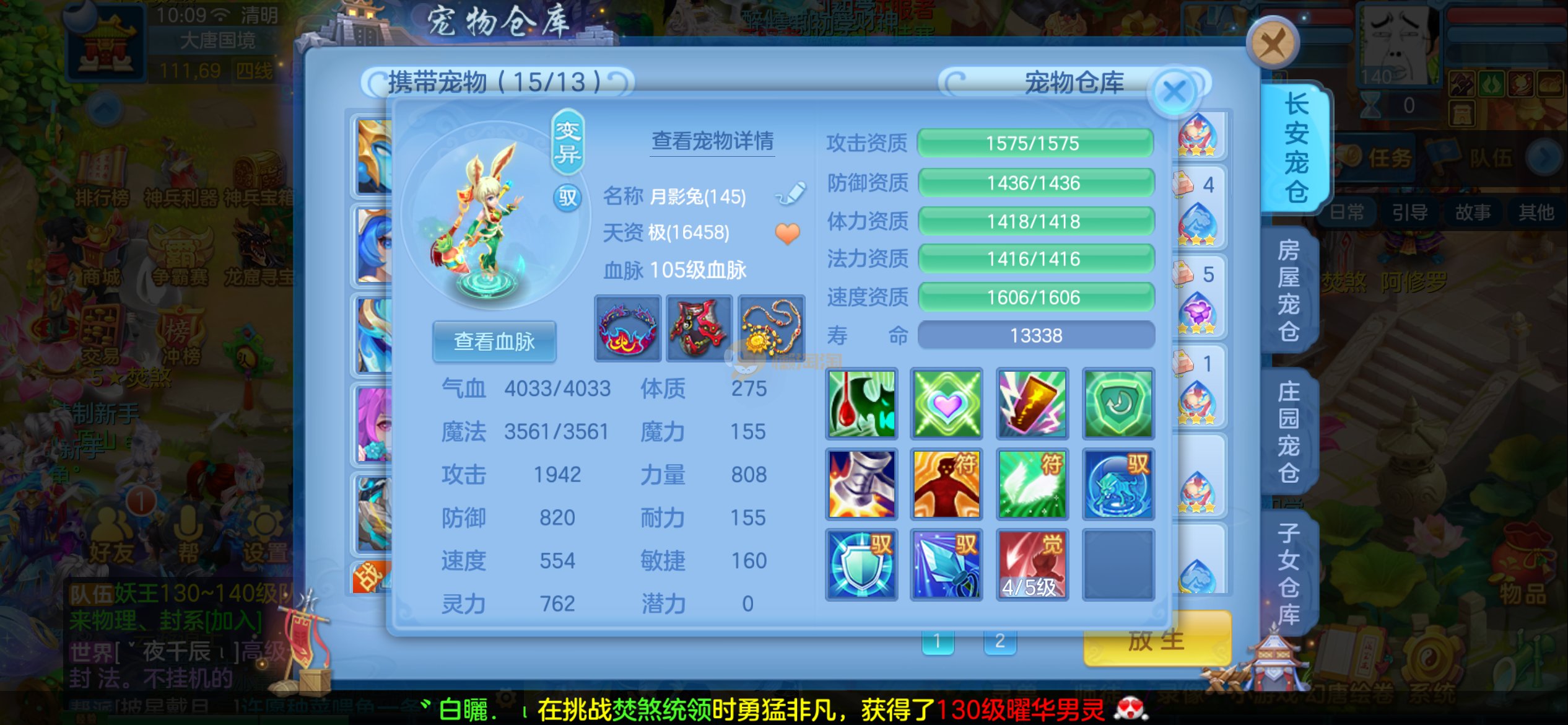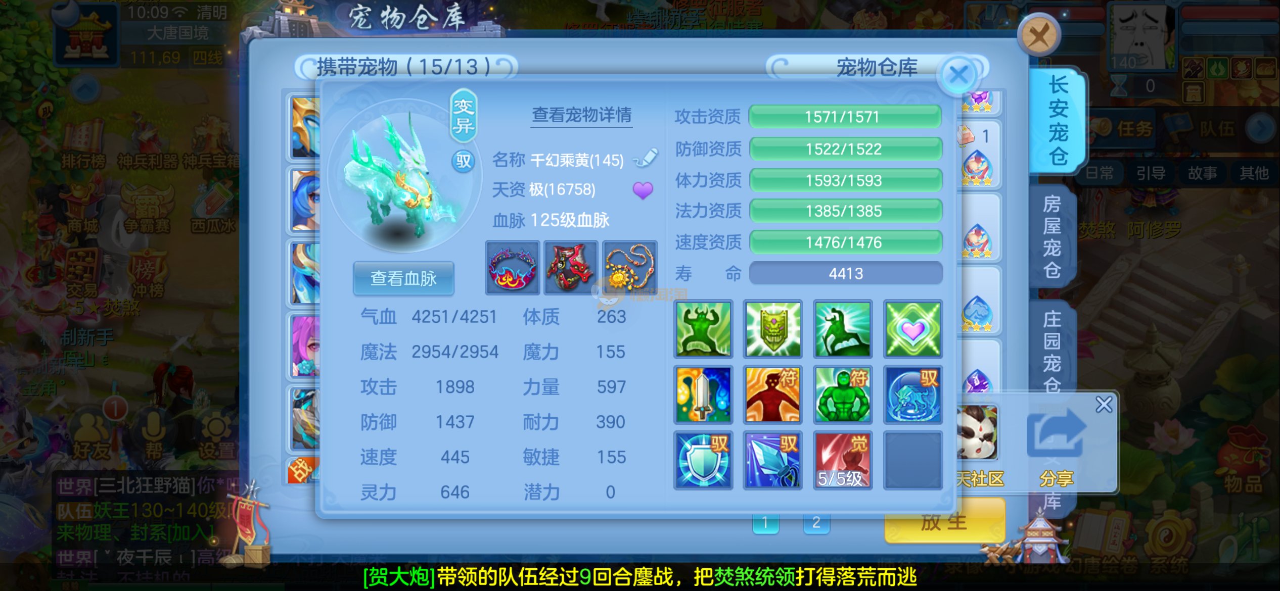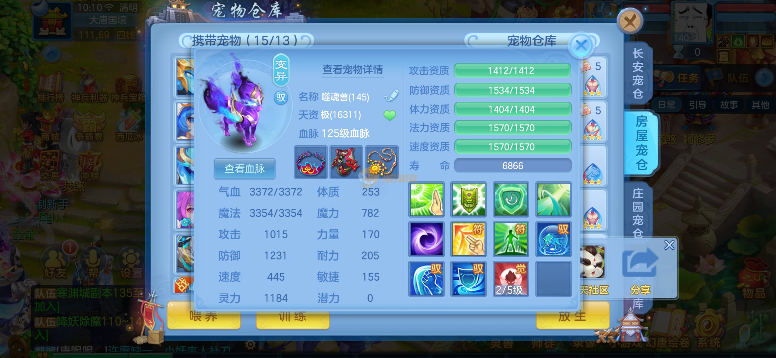 4件14+混13段,不变卡1034速度,1611防御,近9000血,满属性速度能到1350,1650防御,各种宝宝,双内胆神,各种皮肤,打架PK号,三本潜能,5本高书,仓库资源很多,图片放不下,有啥不明白的看图,联系客服,诚心出错过后悔