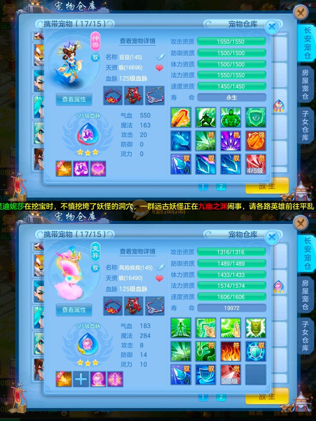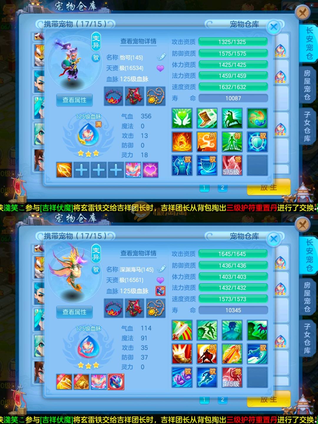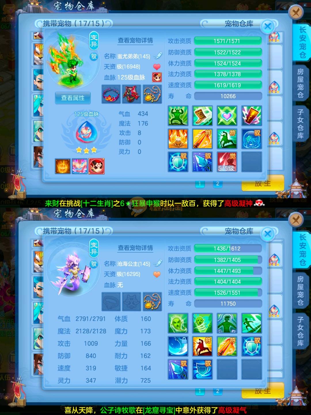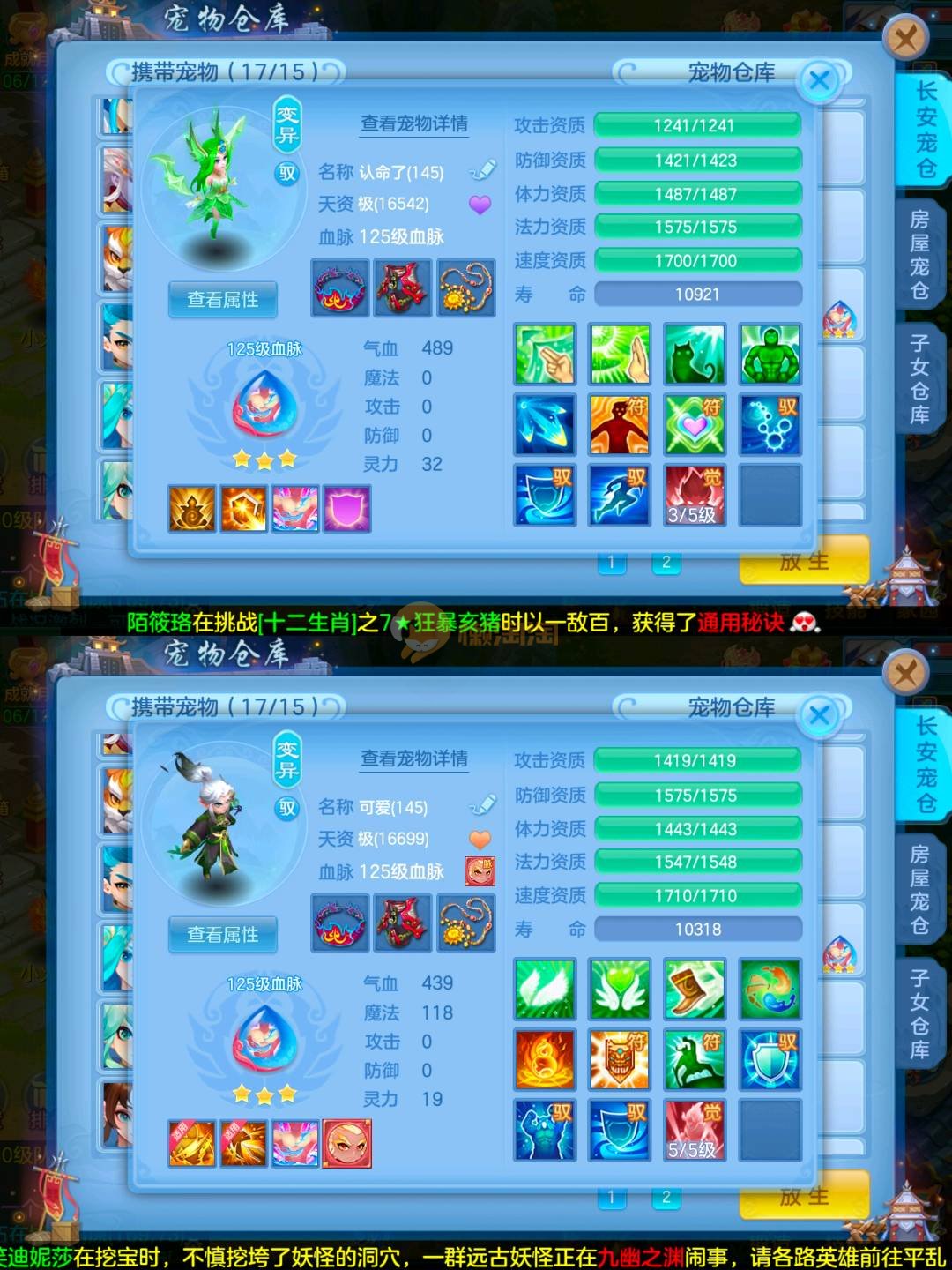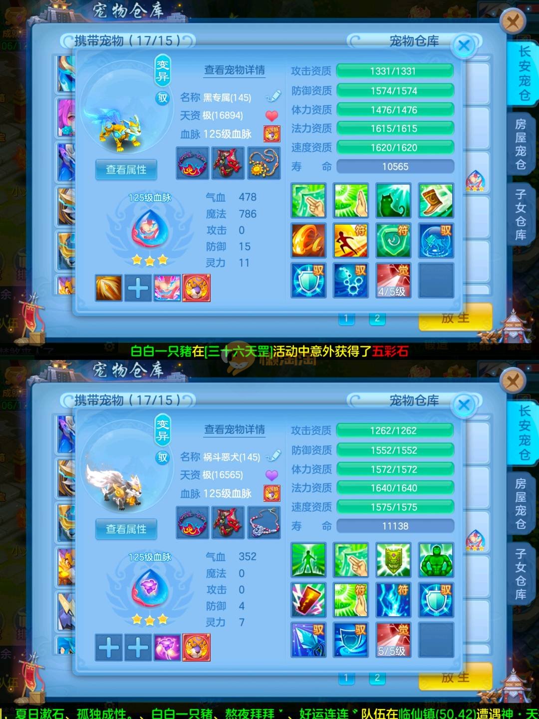 满兽魂14个,还有几个吃了一半,专属血脉15个,宠物皮肤8个,高级坐骑,接手无需投资,上段就行