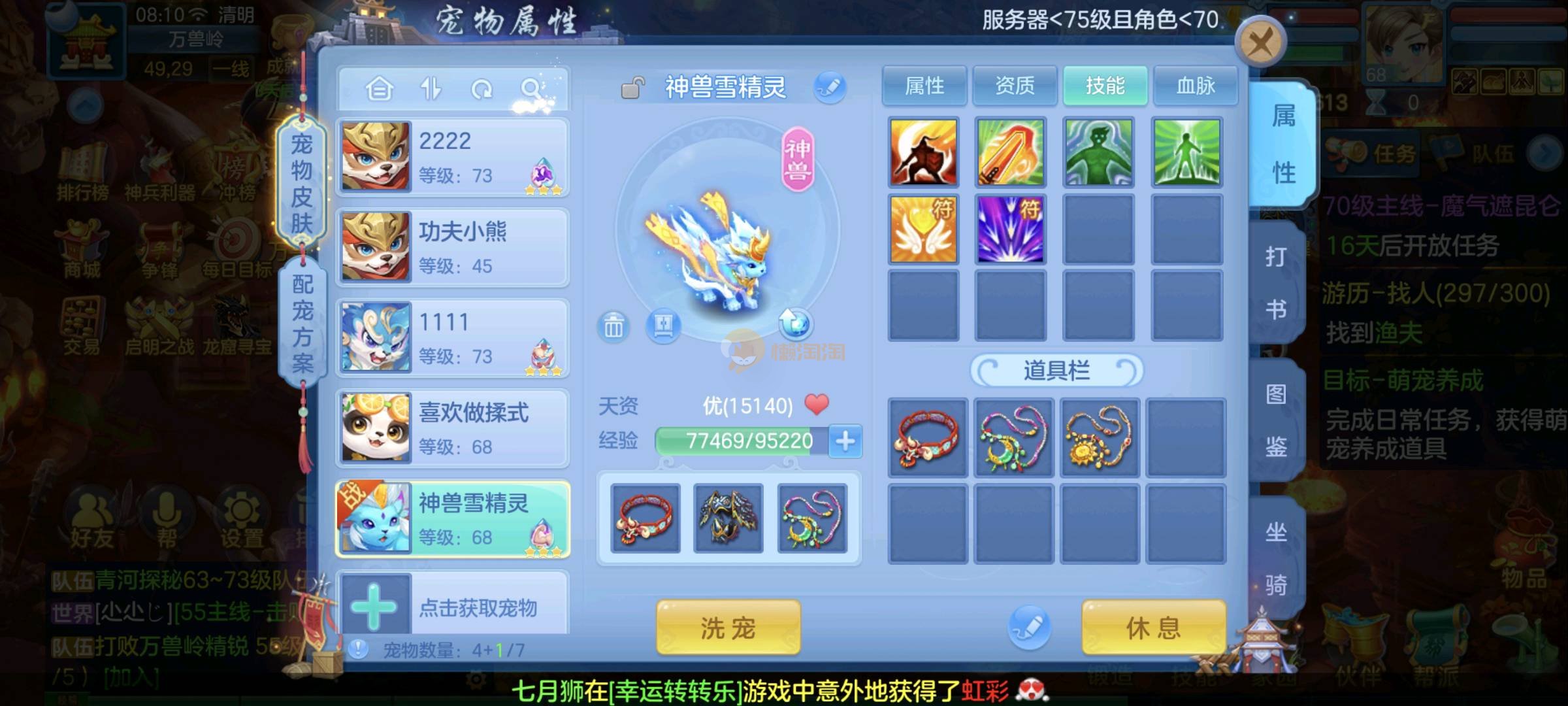 新区神兽雪精灵,坐骑,三只65五技能宝宝,没时间玩了
