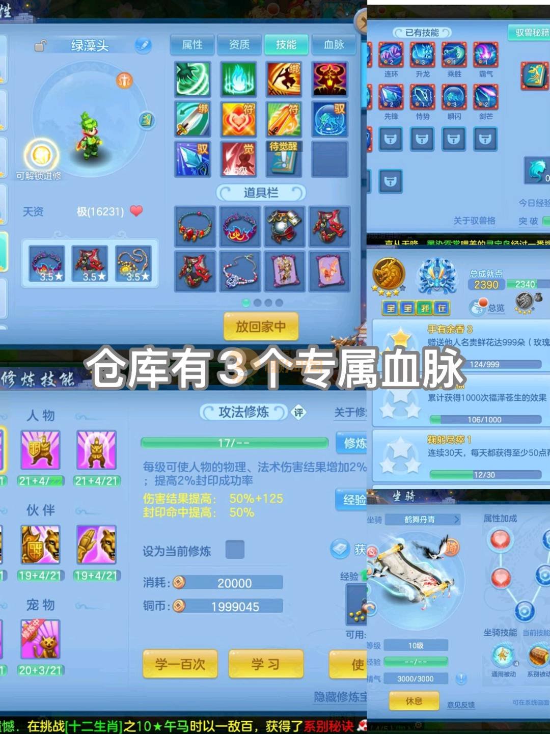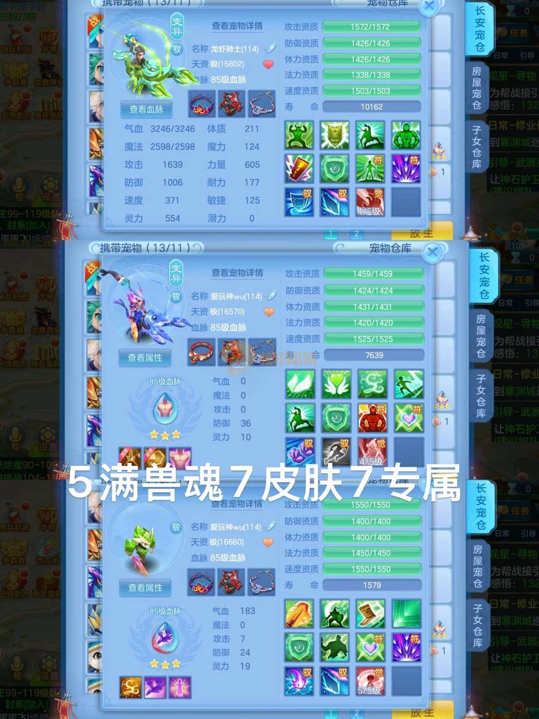 可换绑仙兽12段109化生,无双重7皮肤7专属5满魂