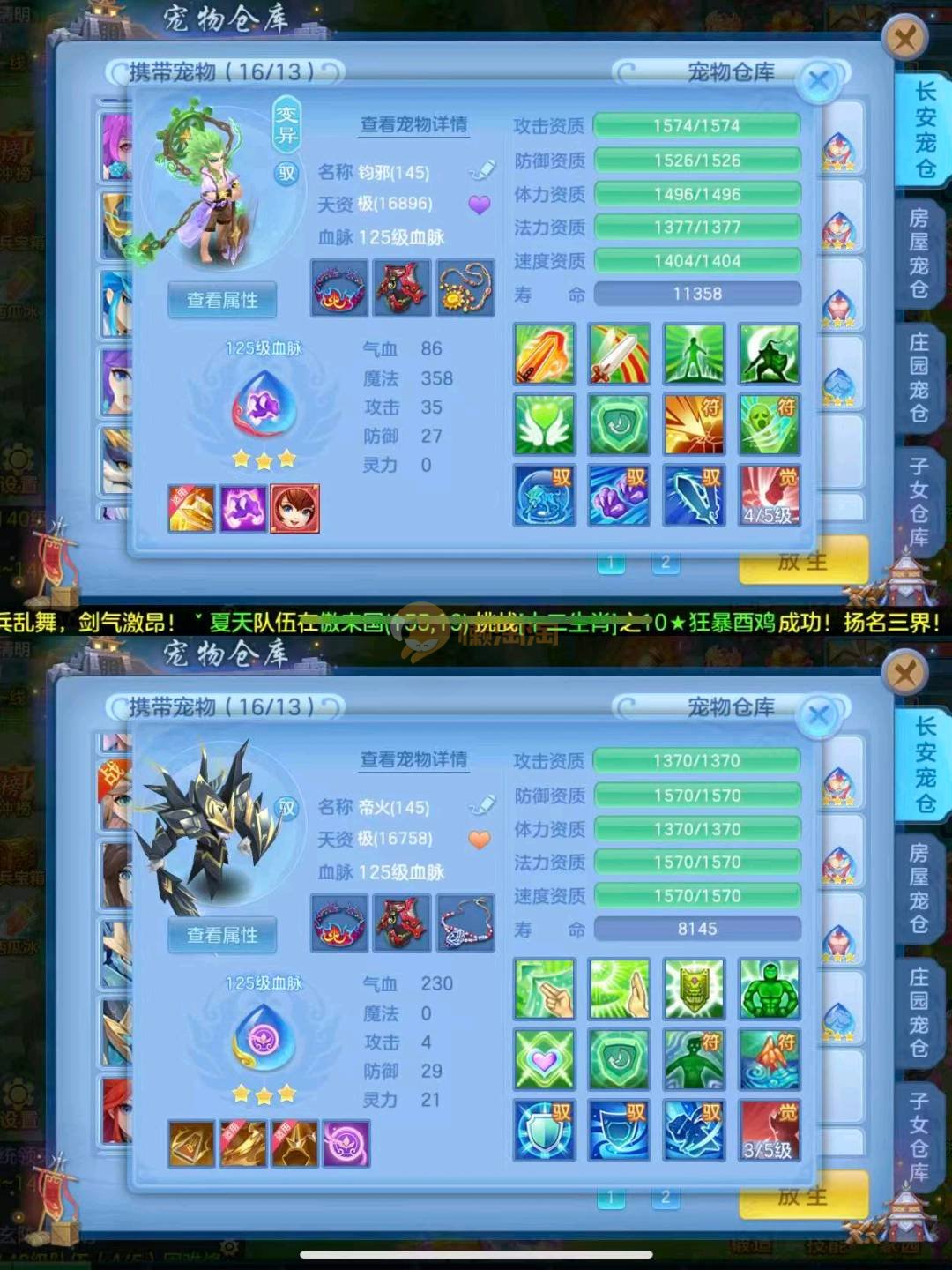 高级坐骑,金拍庄园,银子170万,兽魂7个左右满,皮肤13个,专属血脉9个,竞技可排行,仓库还有个神兽内胆,2980邮箱无双重,100多天换绑