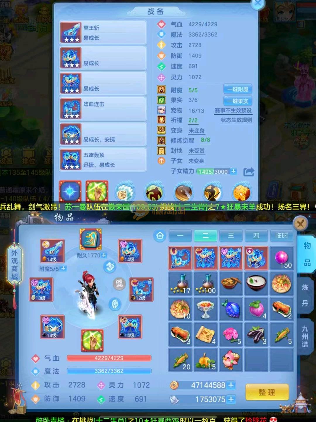 140级天策强化仙兽双内胆神14段两星双红三红装备