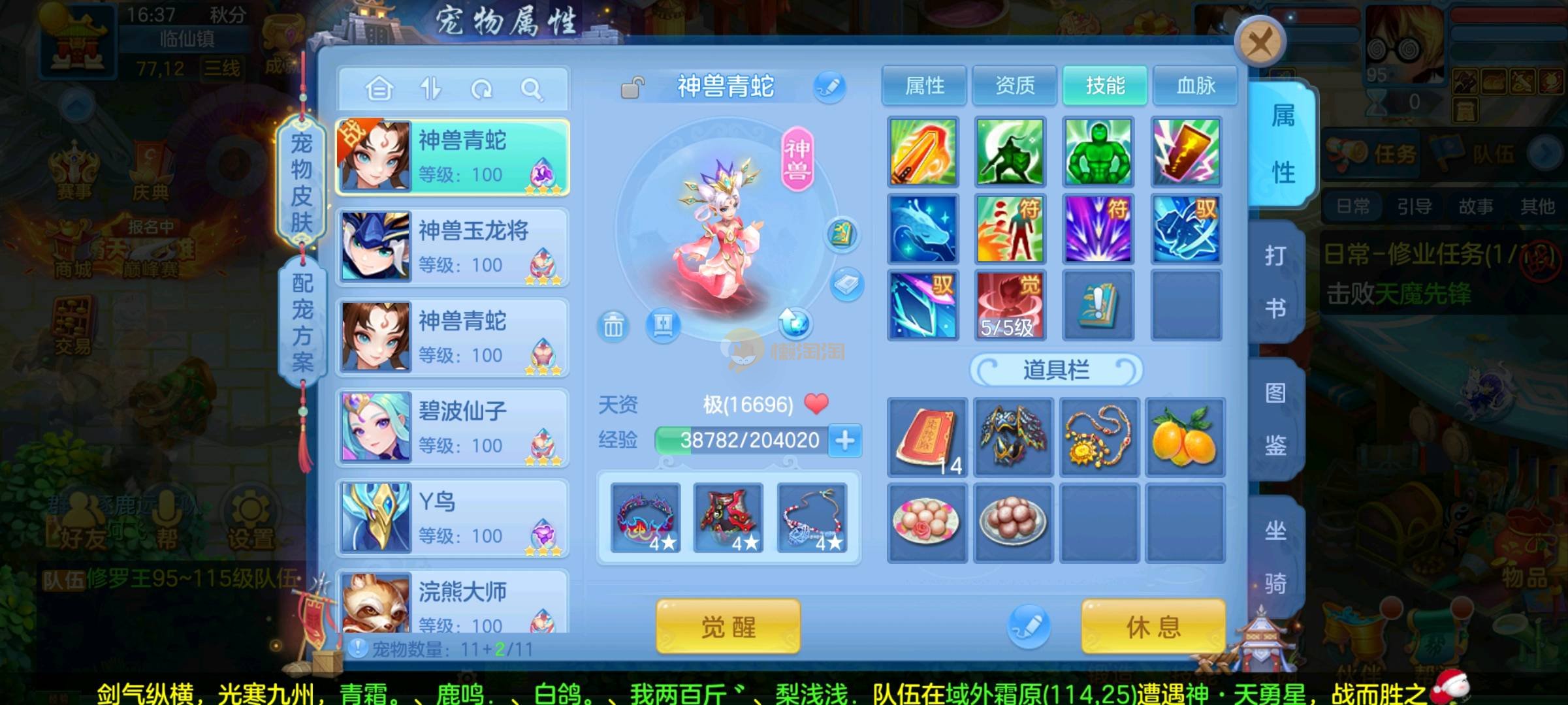 低价出109万兽带进阶神兽蛇2个高级染色坐骑