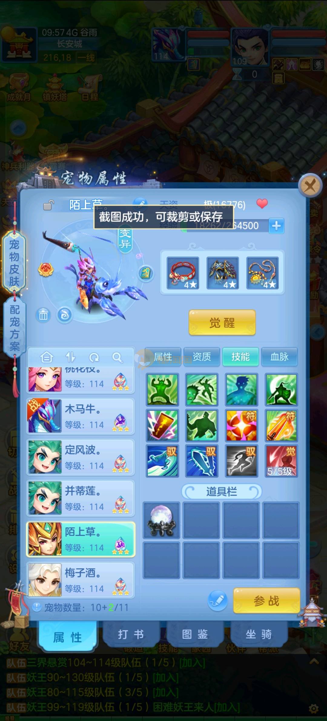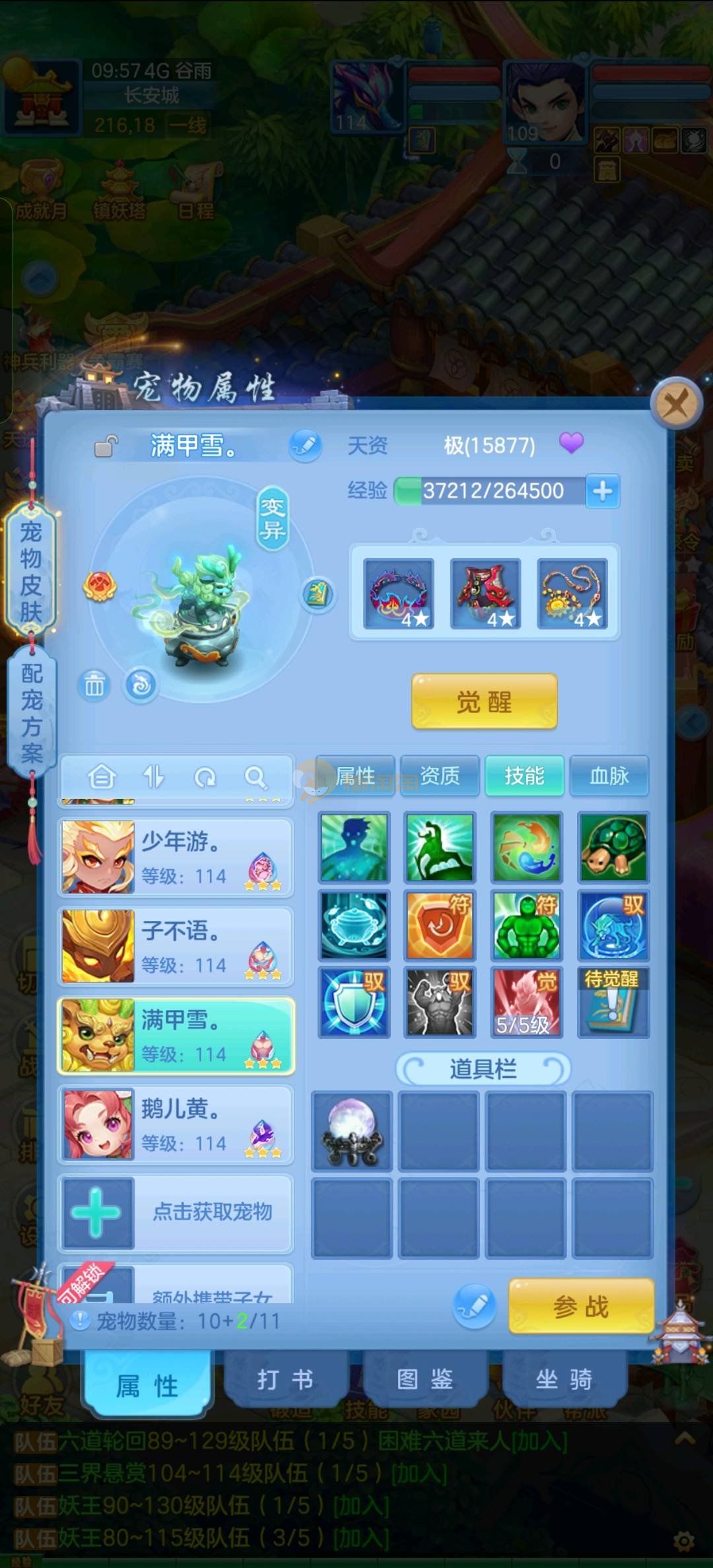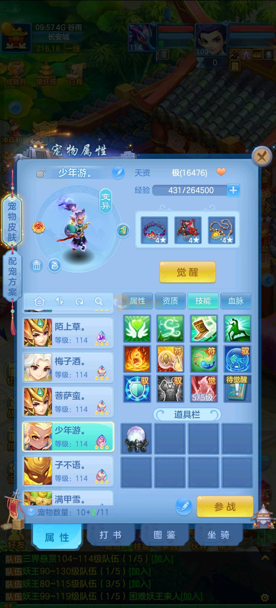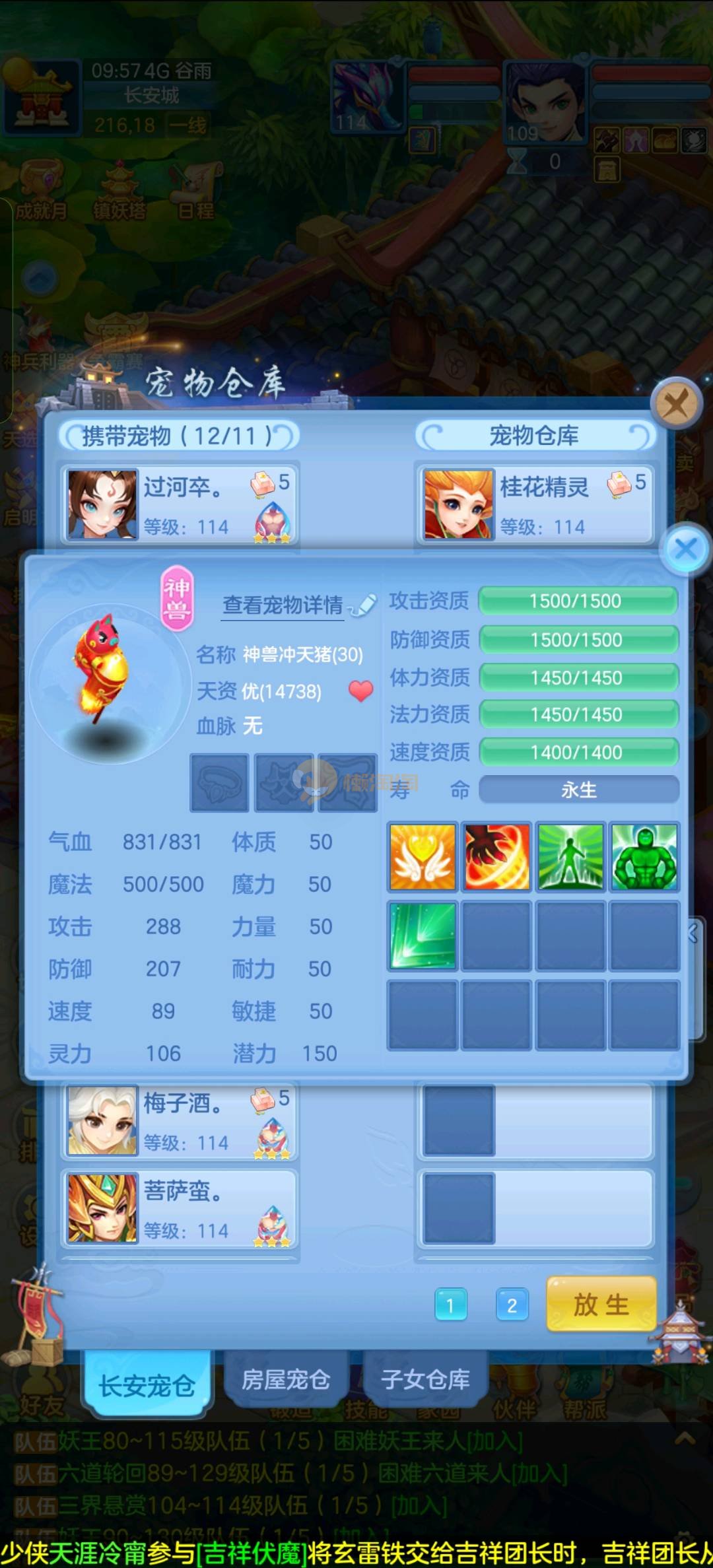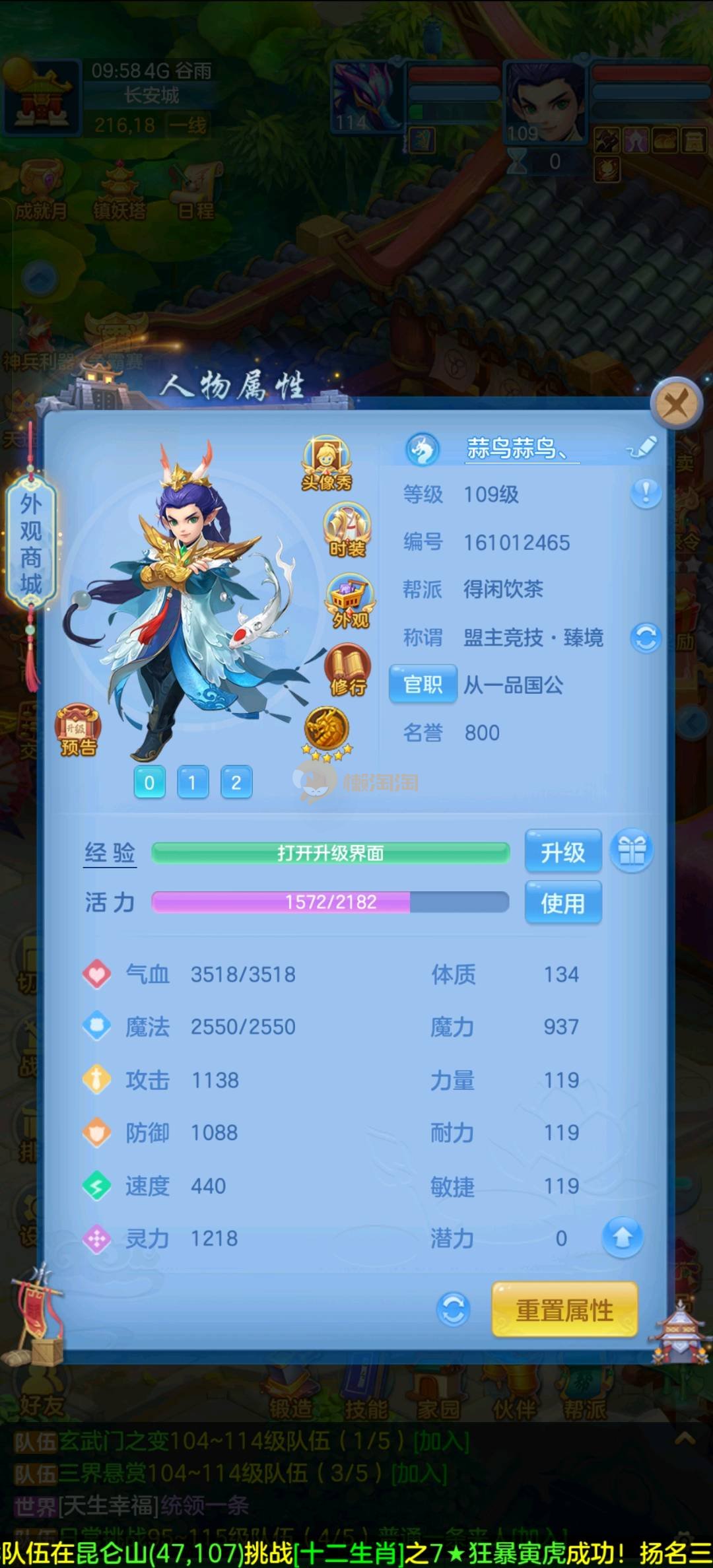 区里最高131级,109龙宫,竞技场马上第一,3内丹神2蛇一猪,猪可以换龙马,有神兽丹,还多一个内丹,有九灵元圣,诸葛神御,号上有个125冥月天,也有高坐骑,三个神兽