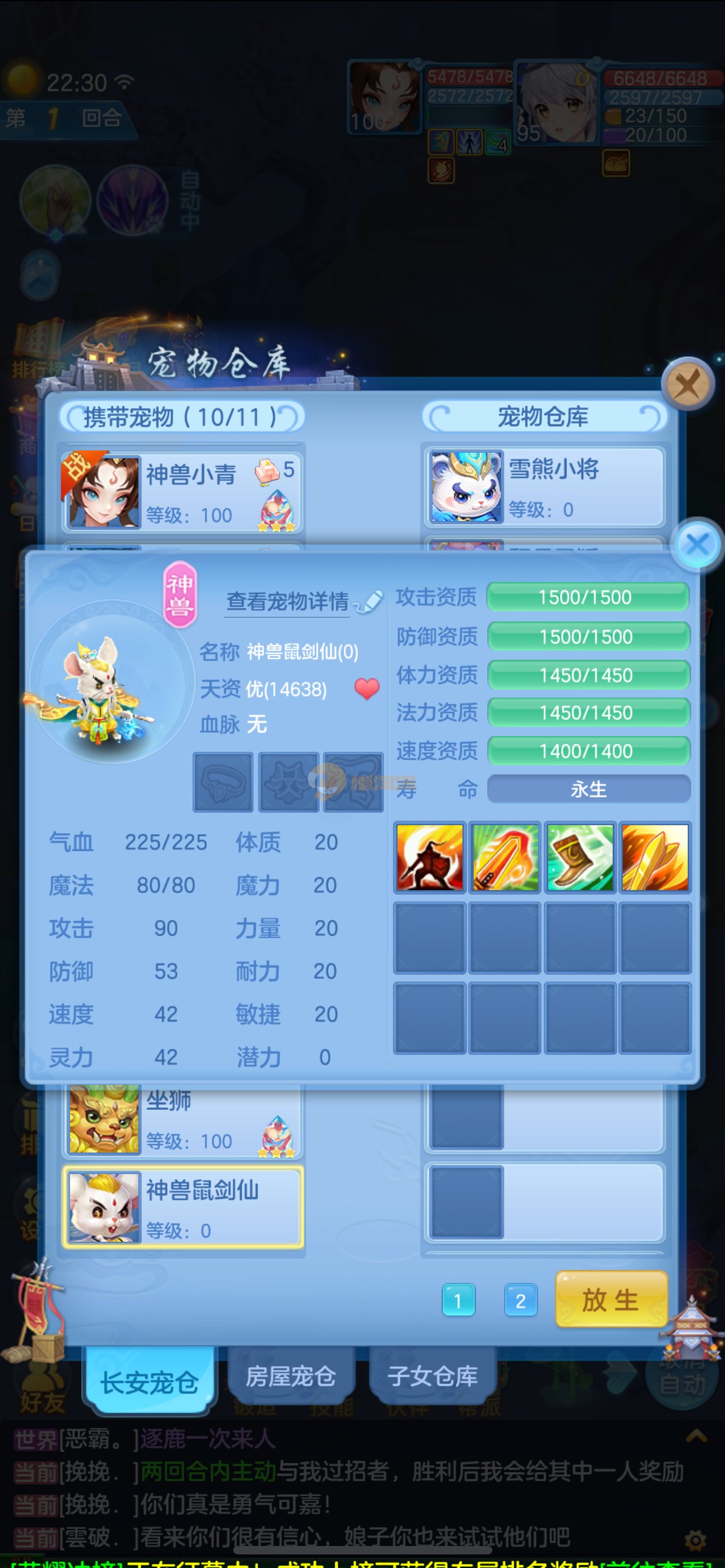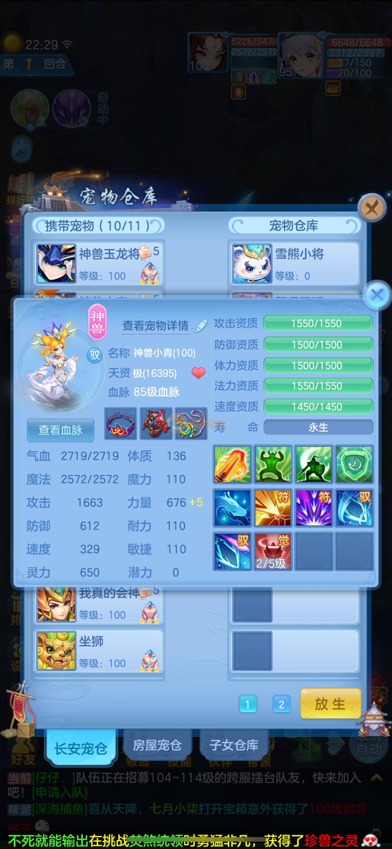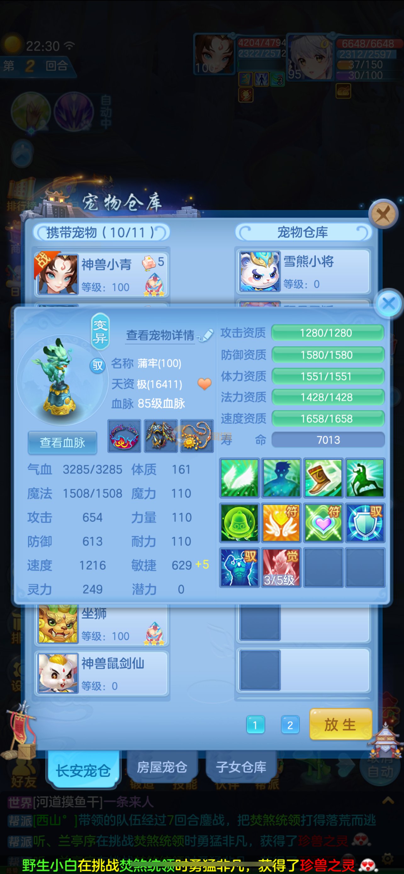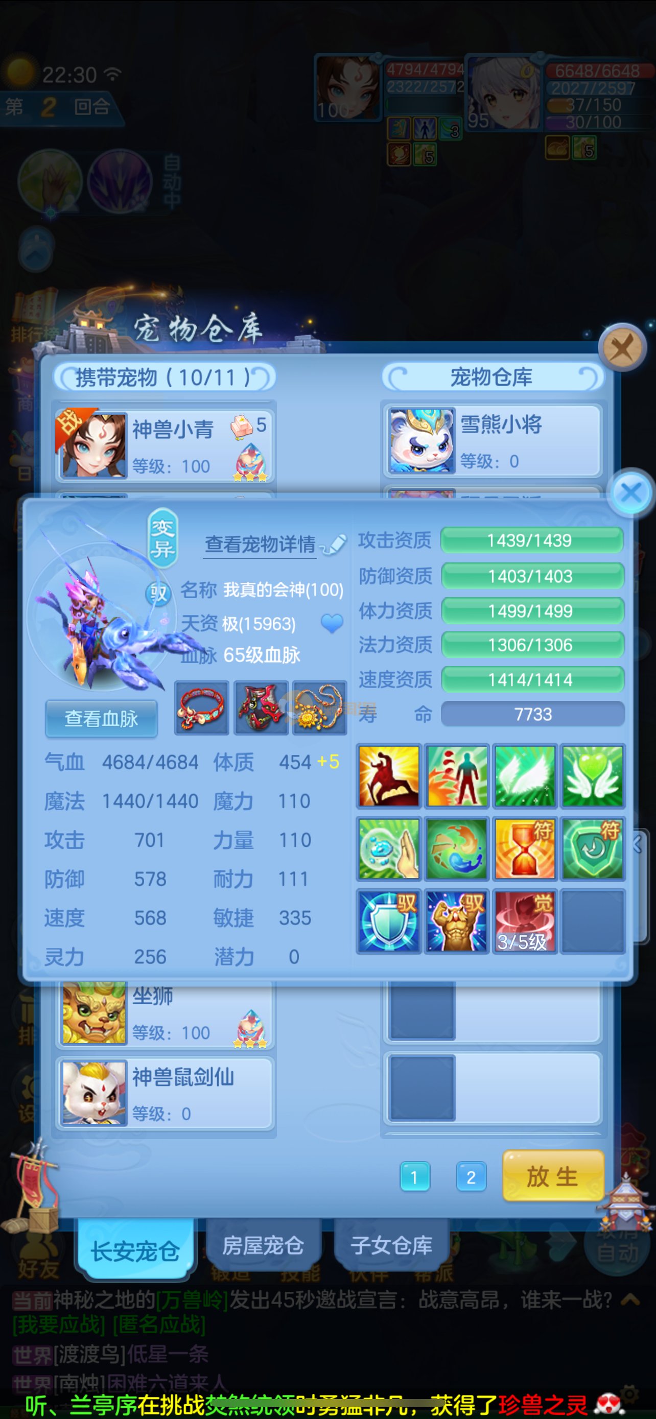 天下无双 95女魔王 2个吃满兽魂果的宝宝 2只6技能虾 2个宠物皮肤1个高级坐骑 2980邮箱 7天换绑