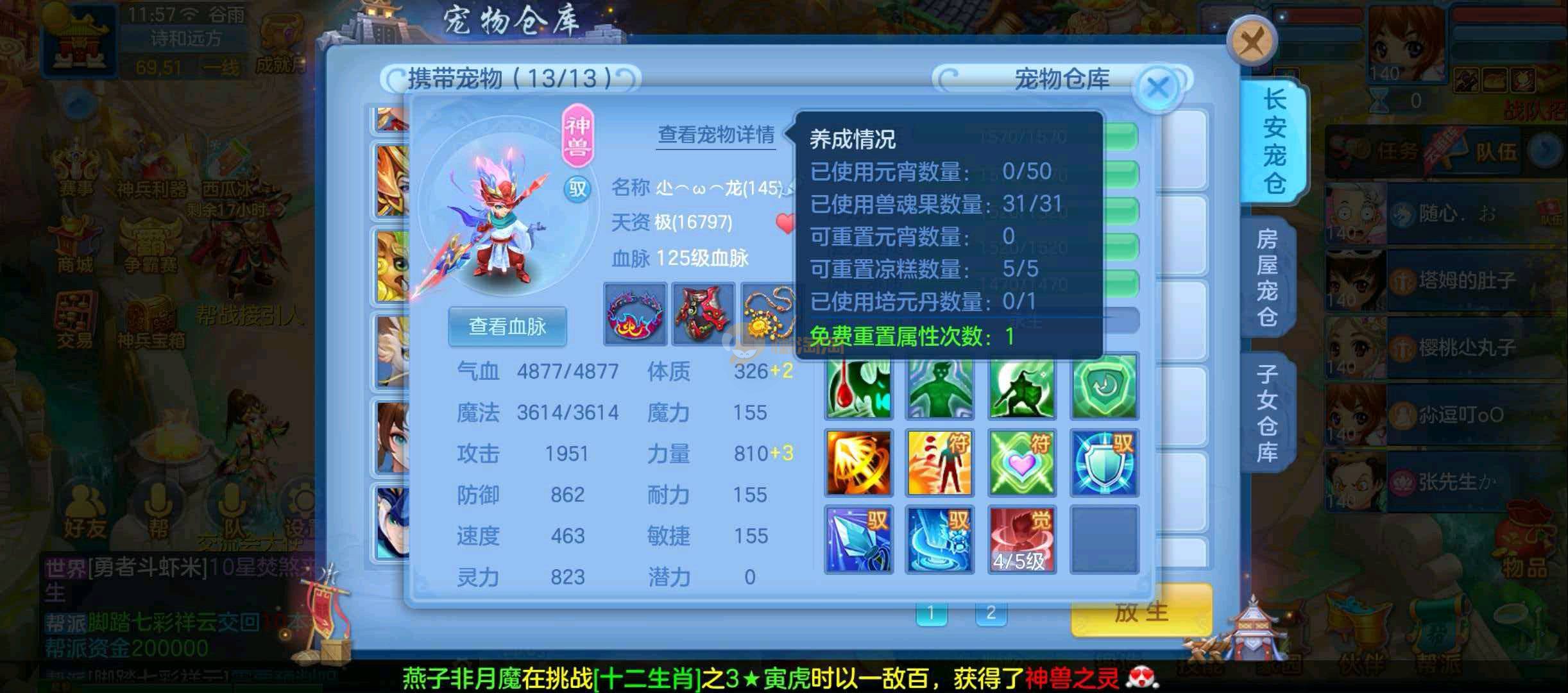 109男狮子6件13段,双神13个宠物天赋20多只成品宝宝