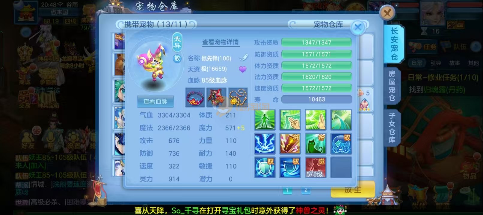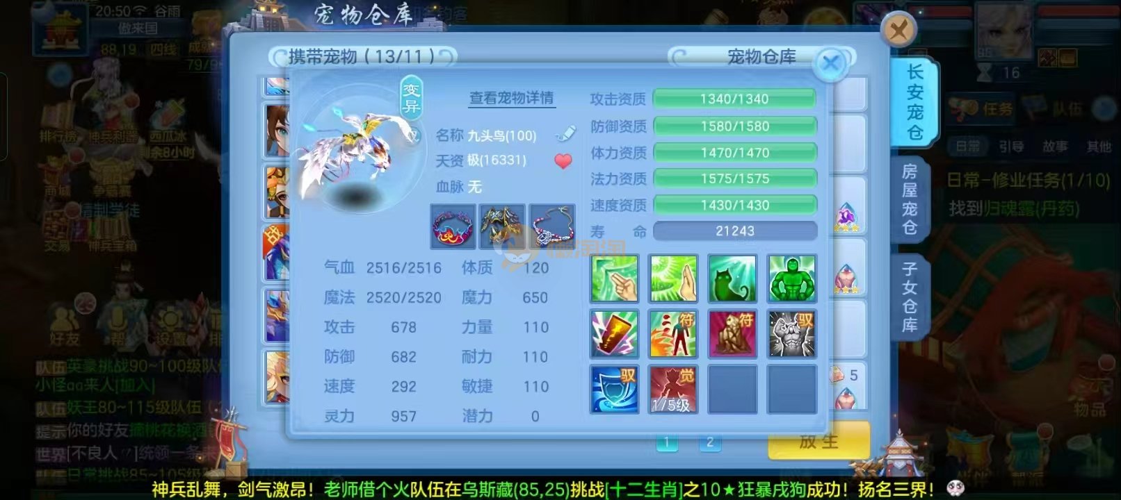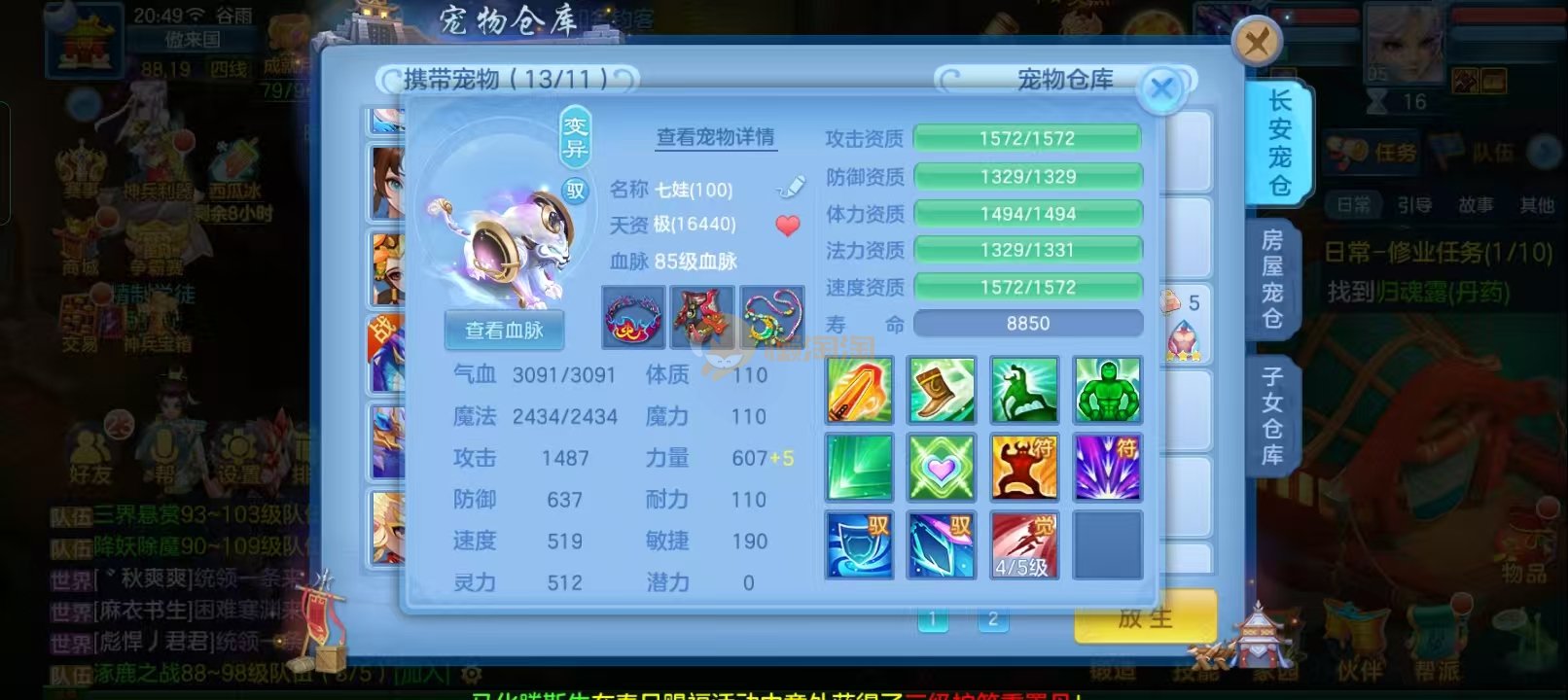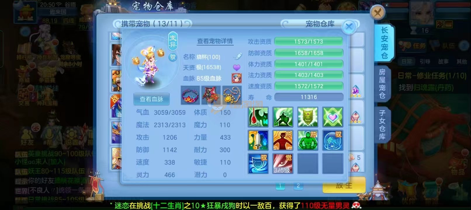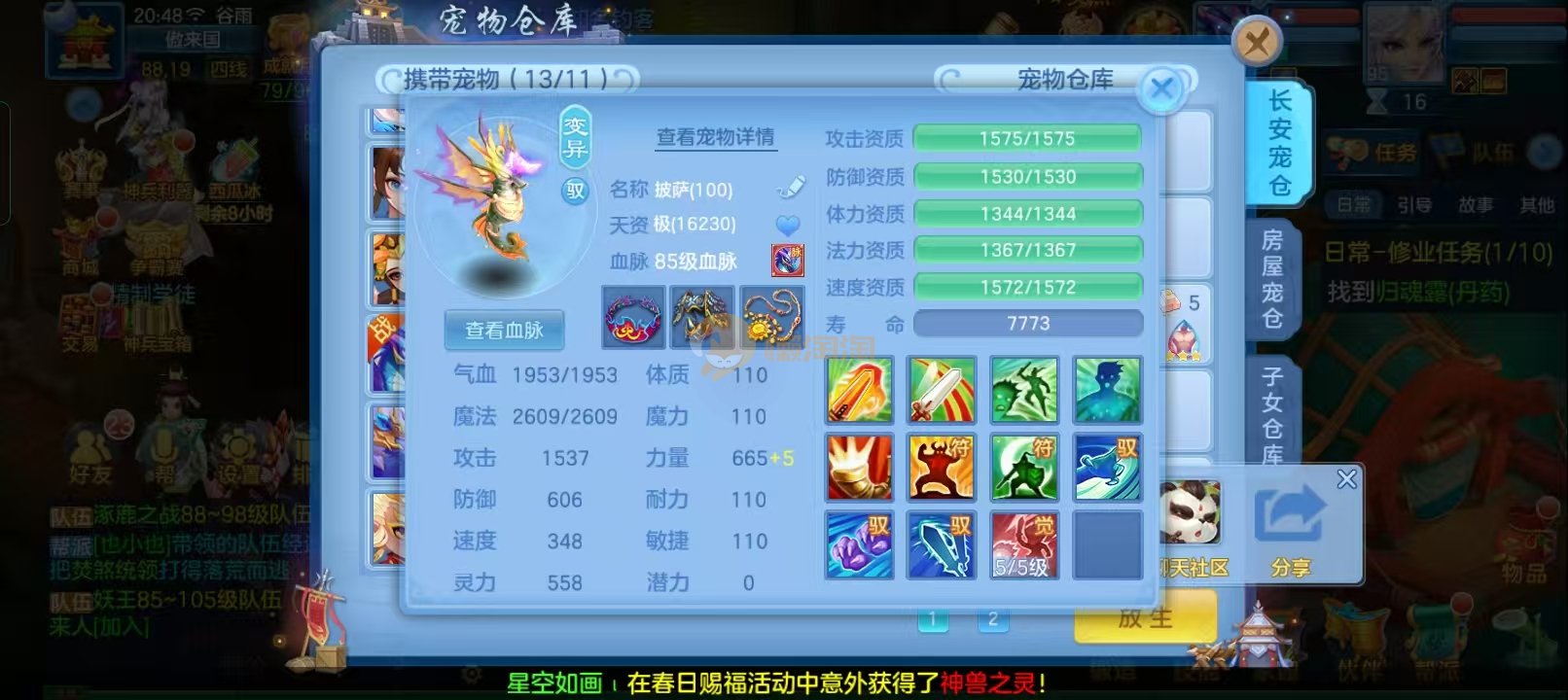 109男狮子6件13段,双神13个宠物天赋20多只成品宝宝