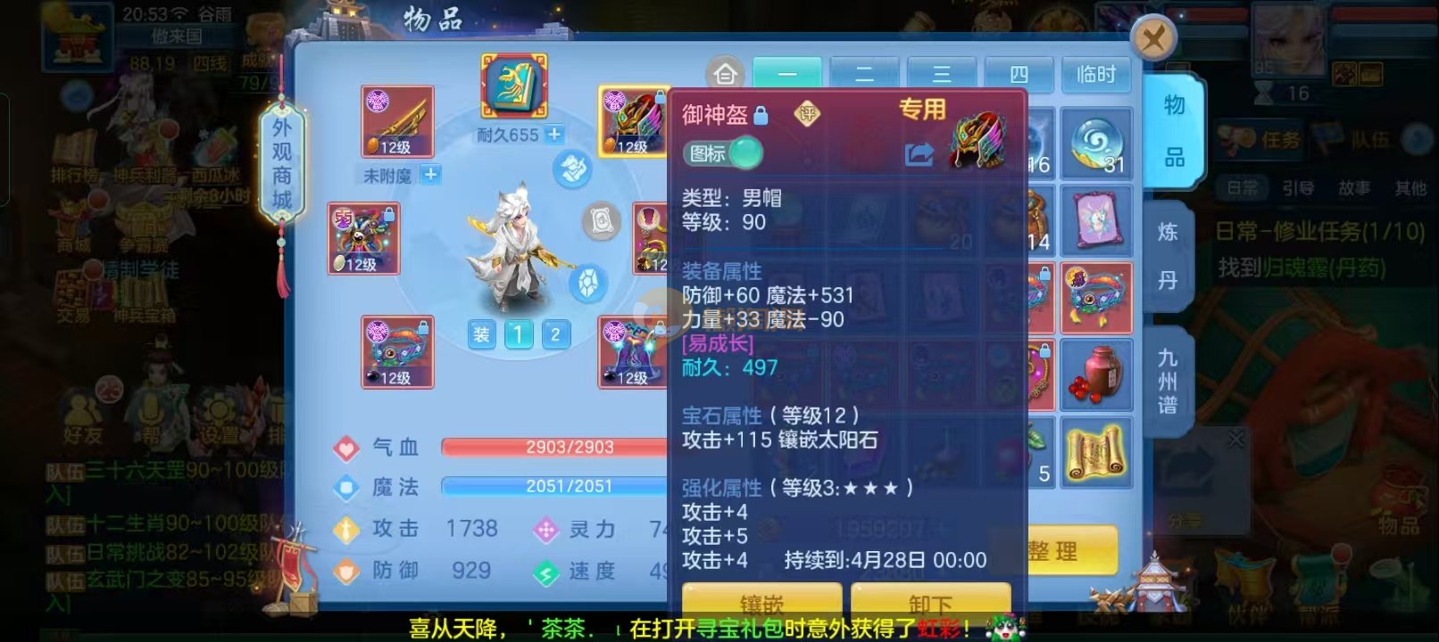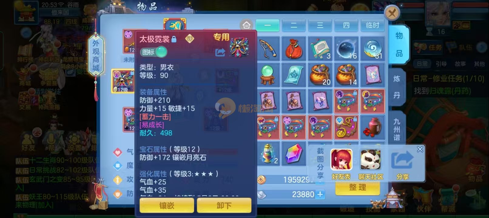 3件14段装备,不变卡1571灵,1500防,困难日常打架随便打