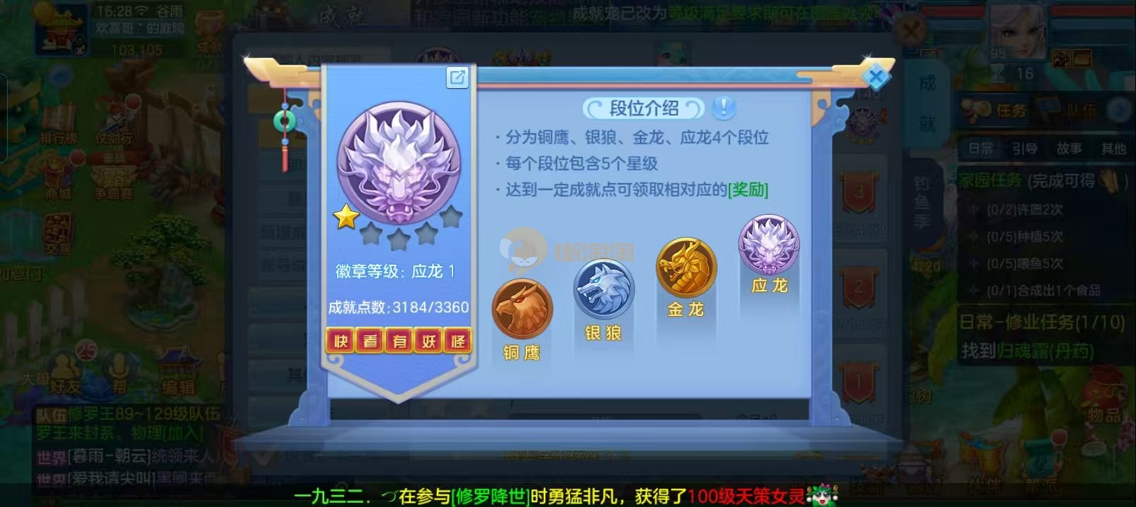今年勇 应龙满配95男冥月,应龙成就,多个满配高坐,双内胆神兽(龙+蛇),仓库马上可以再换一个内丹神。7件12段毕业装备。心血号,低价出。 2980 七天换绑