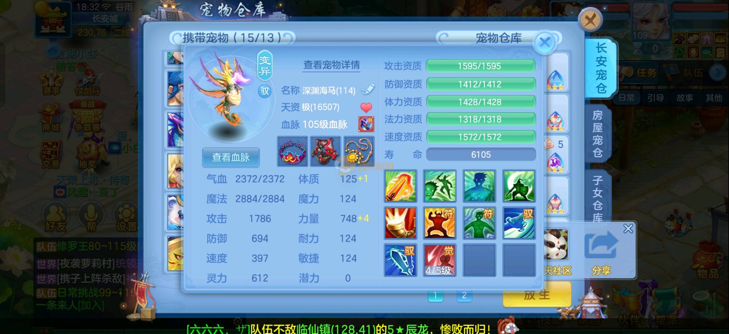 今年勇 应龙满配95男冥月,应龙成就,多个满配高坐,双内胆神兽(龙+蛇),仓库马上可以再换一个内丹神。7件12段毕业装备。心血号,低价出。 2980 七天换绑
