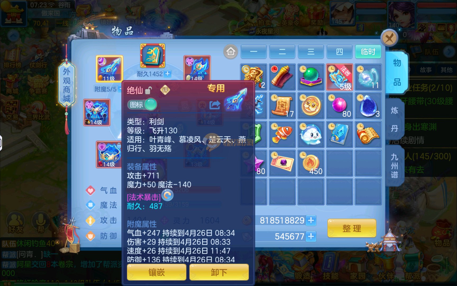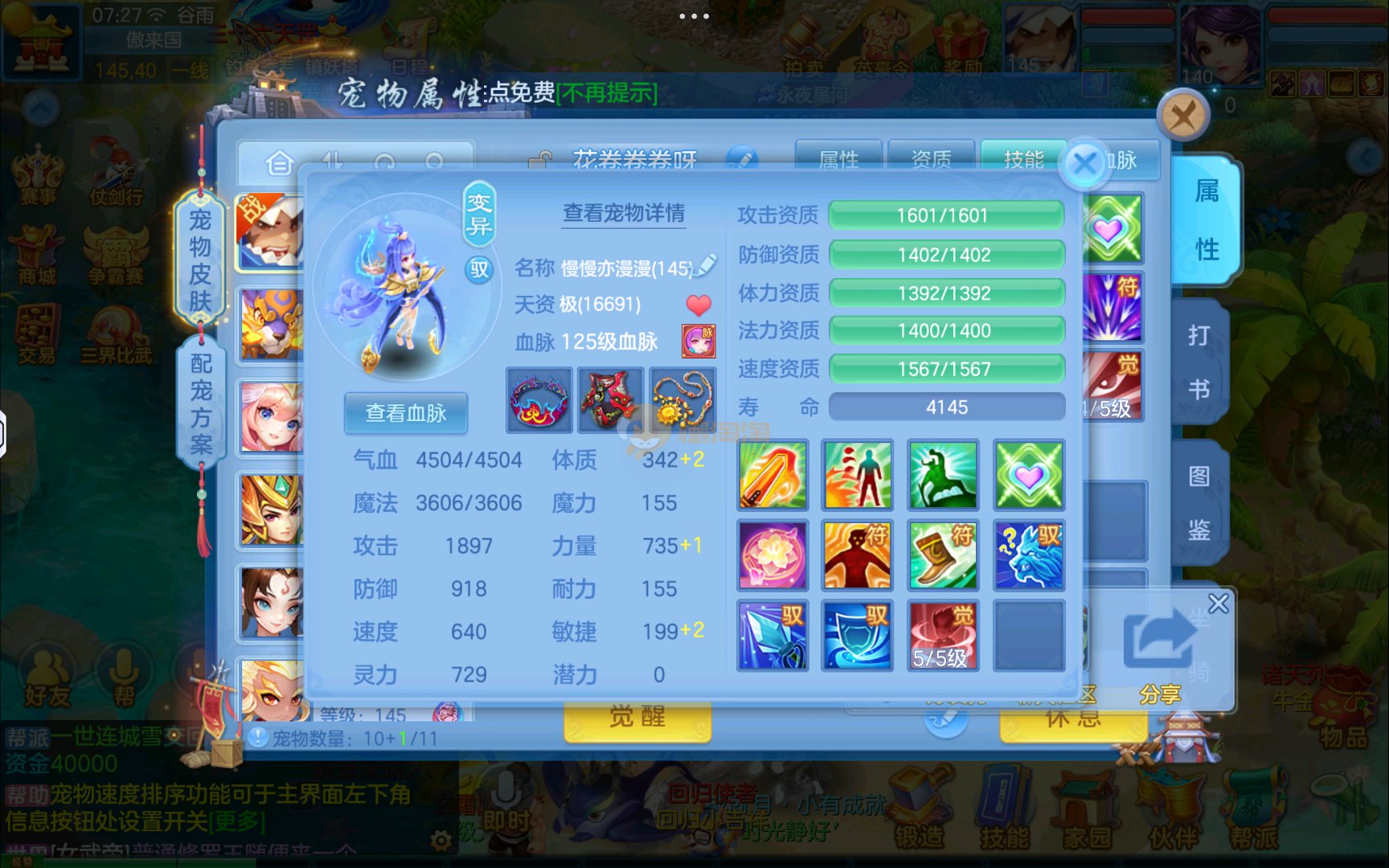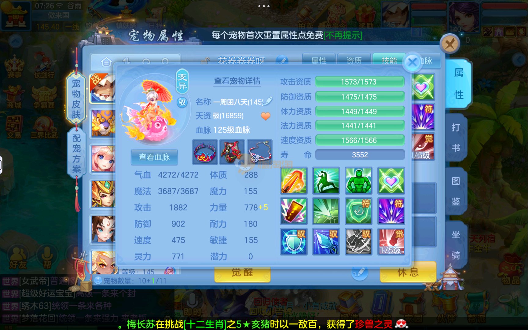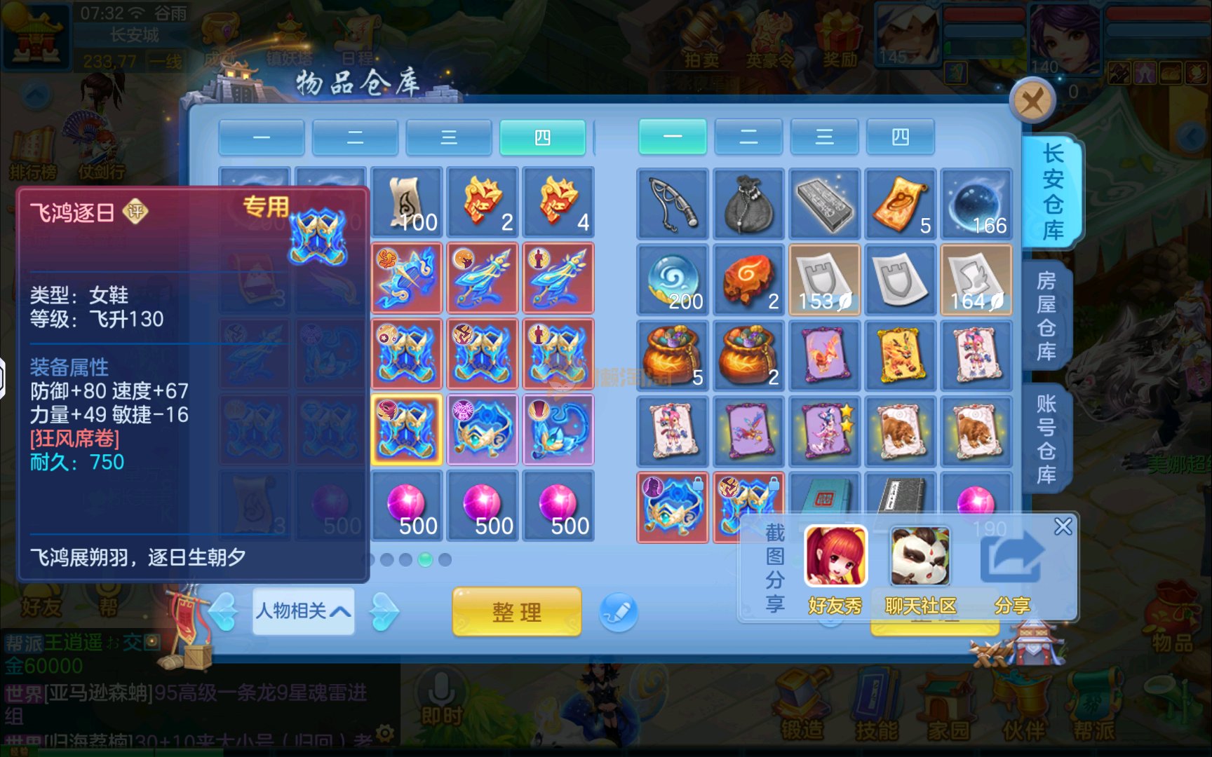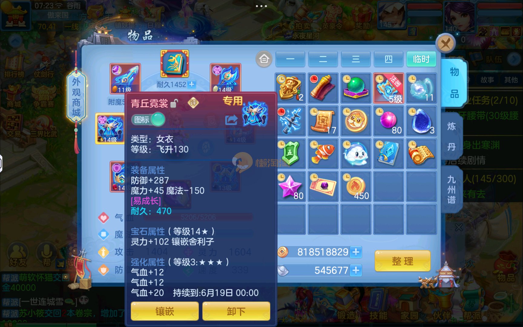 已有8个头饰7个背饰,11个专属有雷司,3个满配高级坐骑,5个满兽魂2个头像券70个神兽灵,有一个满资质内胆蛇。项链14段四星,衣服14段1星,备用装备很多有流星和狂风鞋可以转龙宫武侯,仓库有一堆资源可用,2980邮箱有双重