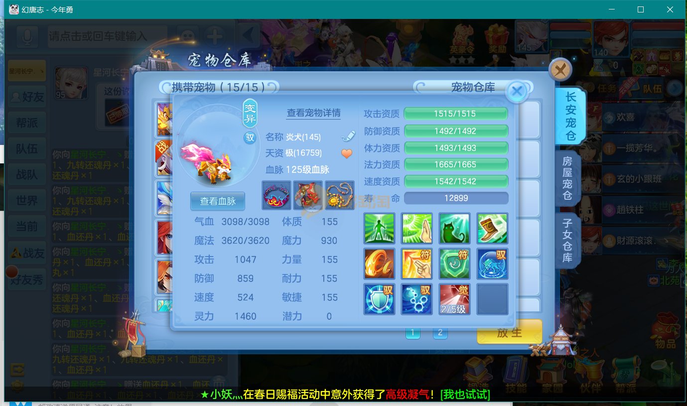 今年勇三内丹神佛门,装备宝宝齐全,各种血脉齐全