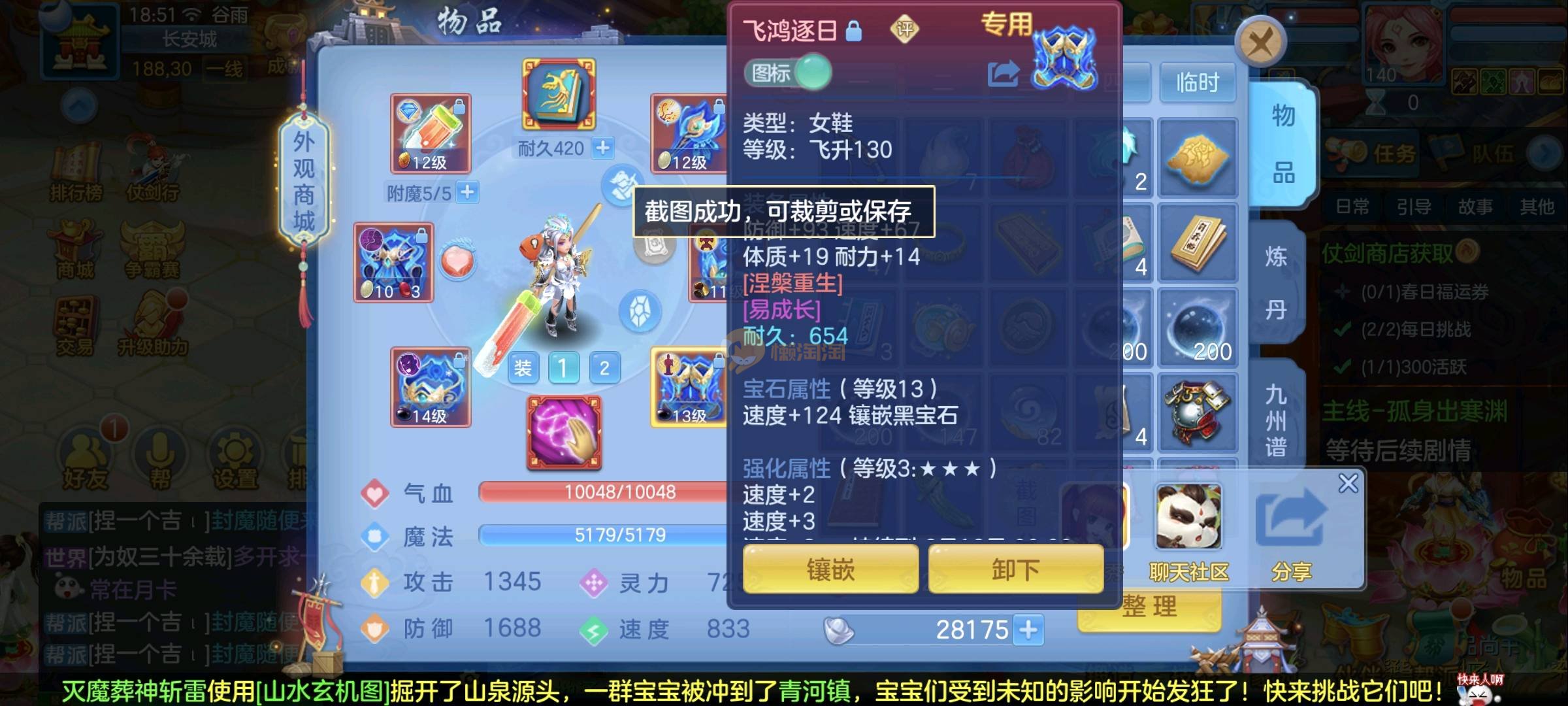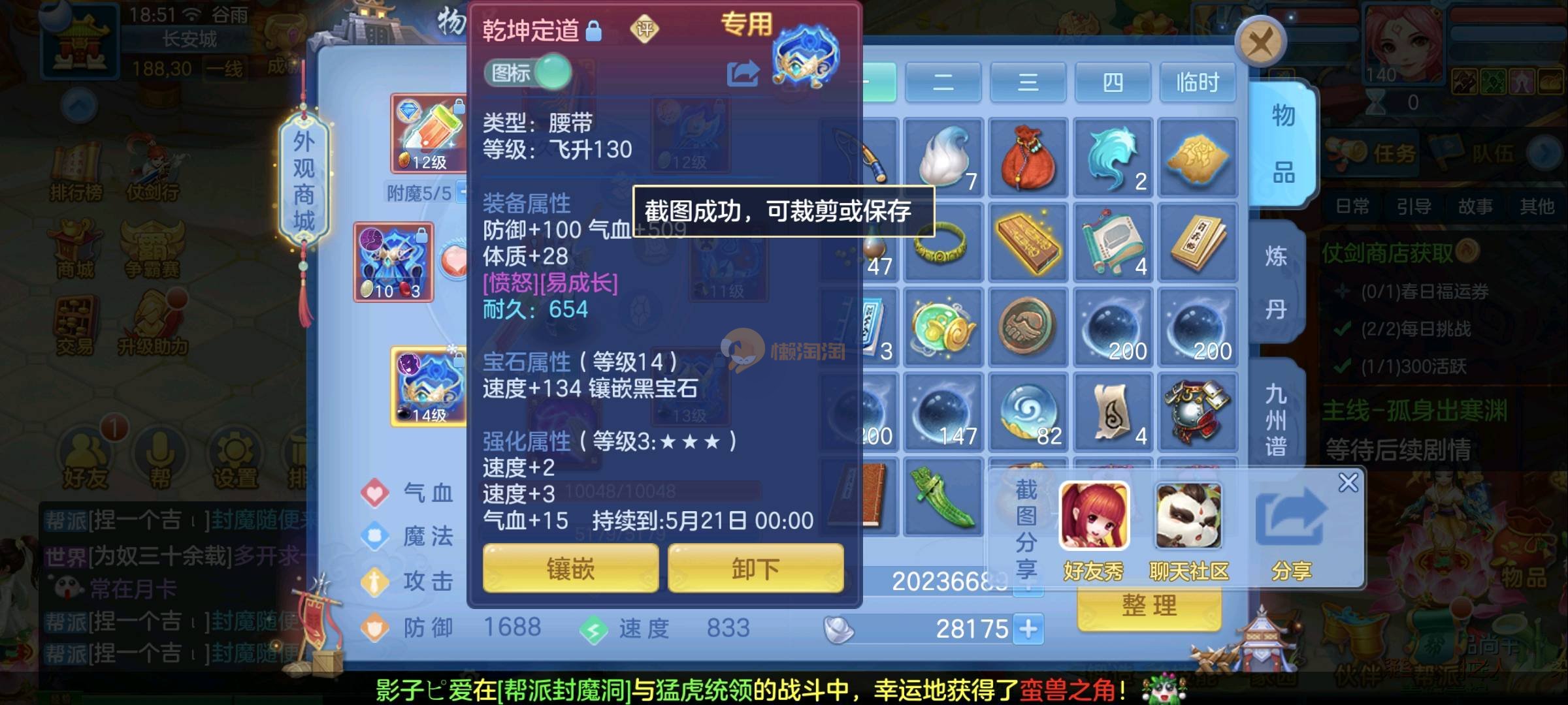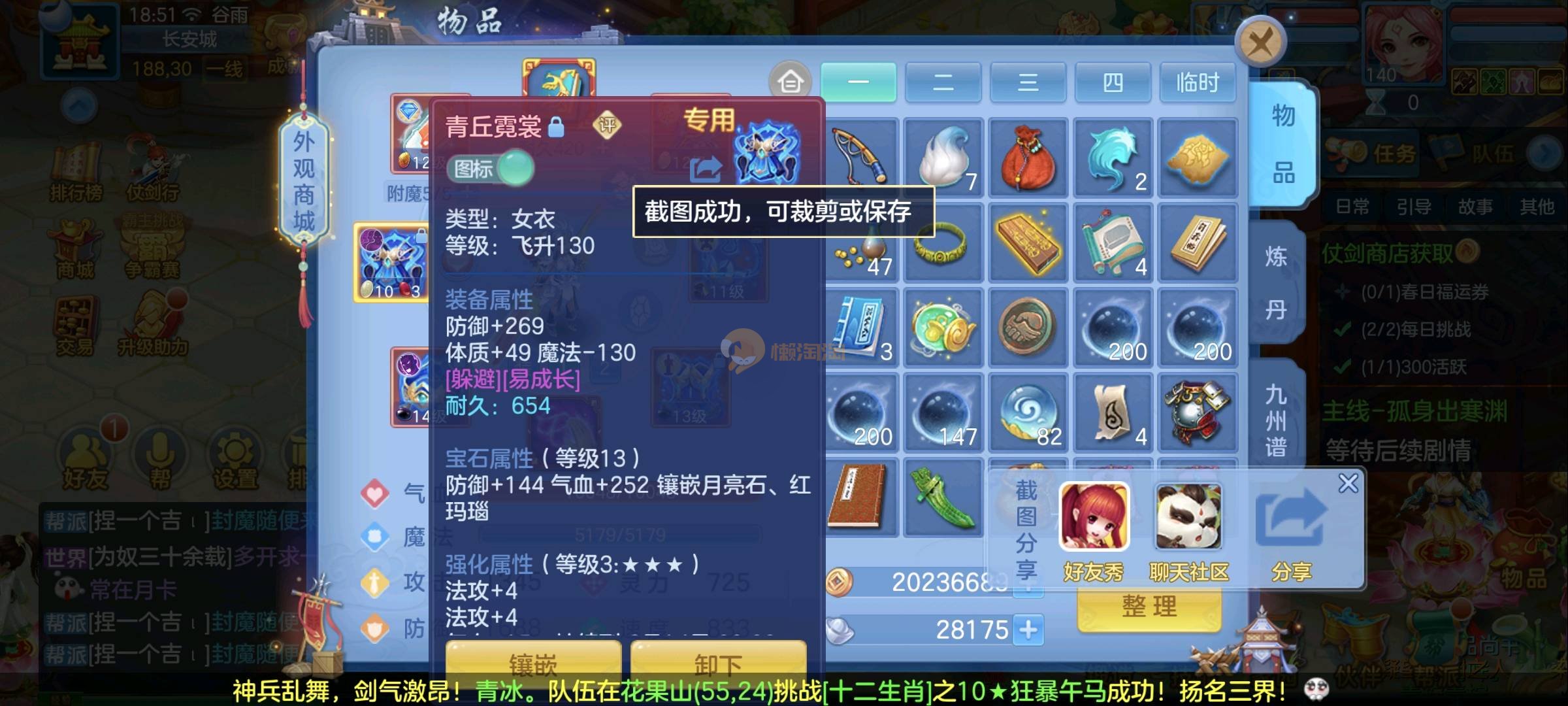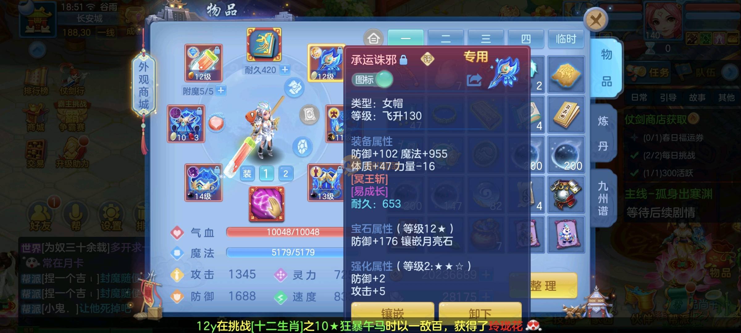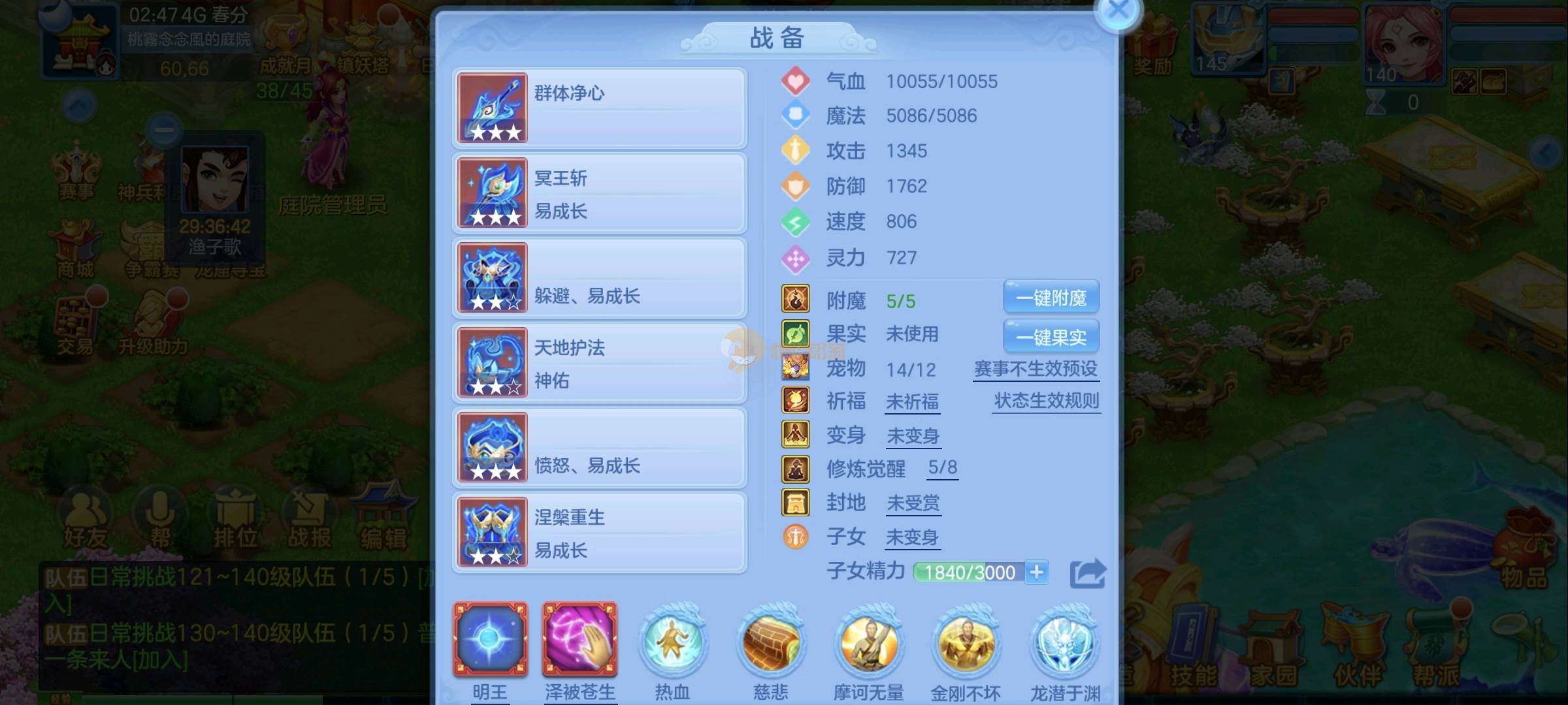 140女佛门 天下无双 毕业装备 14段混13-12 愤怒易腰带 西瓜刀买了 25➕满技能宝宝 强化蛇带皮肤 神兽马 还有一颗内丹马上齐 日常高级一条所以困难副本巅峰没压力 高级坐骑带饰品 双武器都开了 3宠物皮肤 子女齐全 高成就3400➕ 2980一年换绑没双重