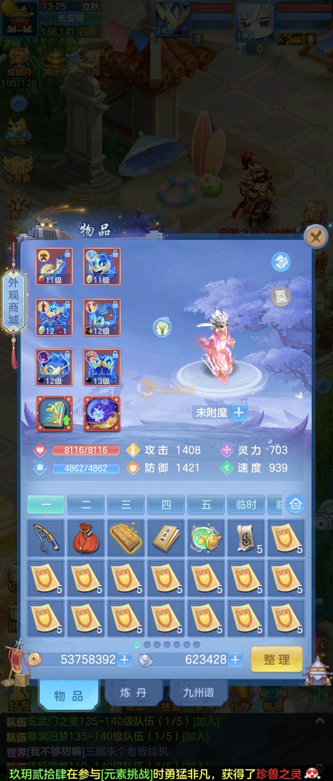 2020区 140级女普陀 14段4星装备 靓号加双仙兽 4个成品公主,3个葫芦娃 玉龙蛇 宝宝大毕业该有的都有,装备特技齐全带愤怒易 各种双红装备一仓库 服战号 细节看图 大毕业究极体 细节看图