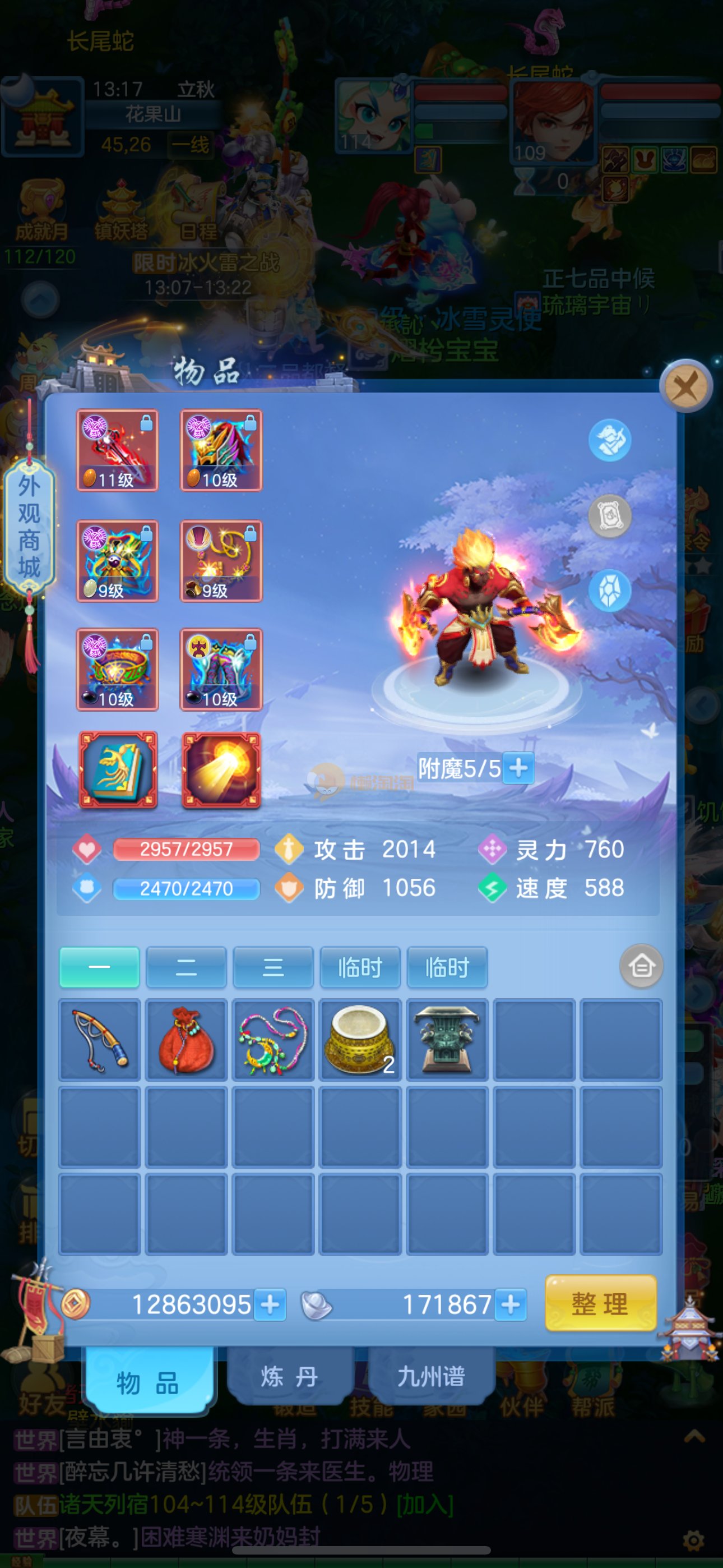 二0二0区140男龙宫 靓号AAAAAAB 不变卡1611灵 6件14段4星满段 有物理系武器宝石14段满段 黑红腰带都是14.4段 全身毕业装备 毕业宝宝 靓号 双仙兽加上仙兽皮肤,带冰晶庄园 新区大毕业 目前本区最强法师 细节看图 2980邮箱 7天换绑