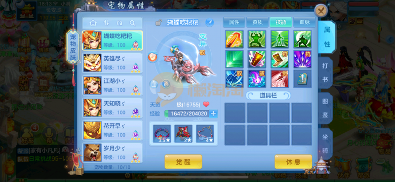 出江山如画区飞升140级 男 天策可转辅助和封仓库有装备,130愤怒易神器腰带 12段 内丹神兽虎 飞升6技能宝宝 高级坐骑/57w武魂官职/134万银子/1135竞技积分/1600宠物积分/一个头像卷/695太阳石/152黑石头/21个130级天策男灵/1本高级强力